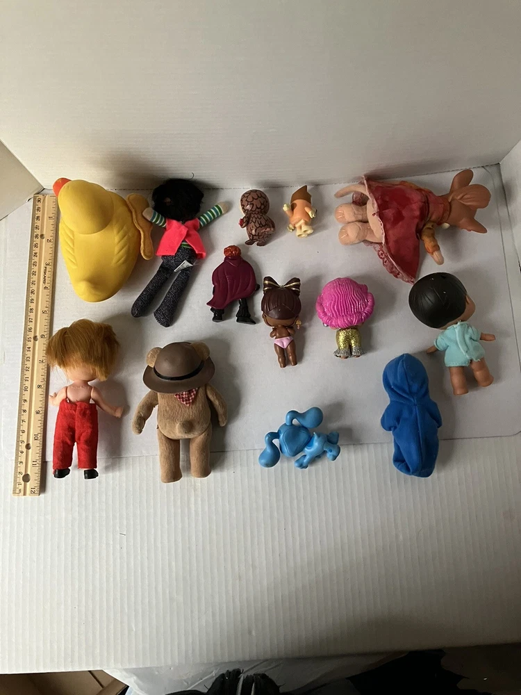This auction is for a mixed lot of toys .All have some wear and need TLC. Please see pictures… the duck is largest at 5”x5” the duck is also by knickerbocker, the girl mouse is from Fievel goes west Tanya Mousekewitz …there is a Ty owl it’s hard not stuffed and other toys , Mattel 1975 Honey Hill Bunch Clubhouse Solo doll with its guitar ,Furskins 5” flocked bear Dudley and more …please see pictures.At this time I don’t ship internationally and I don’t combine shipping