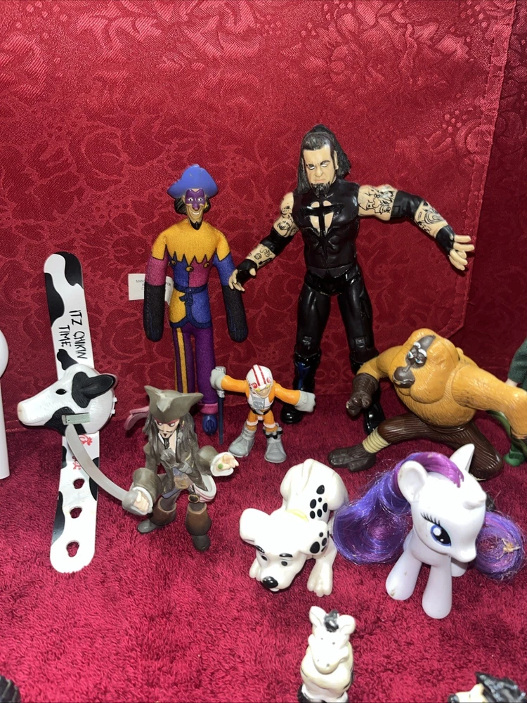 Vintage Mixed Minitures Toy Lot Pogs Animals Plastic Star Wars Junk Random