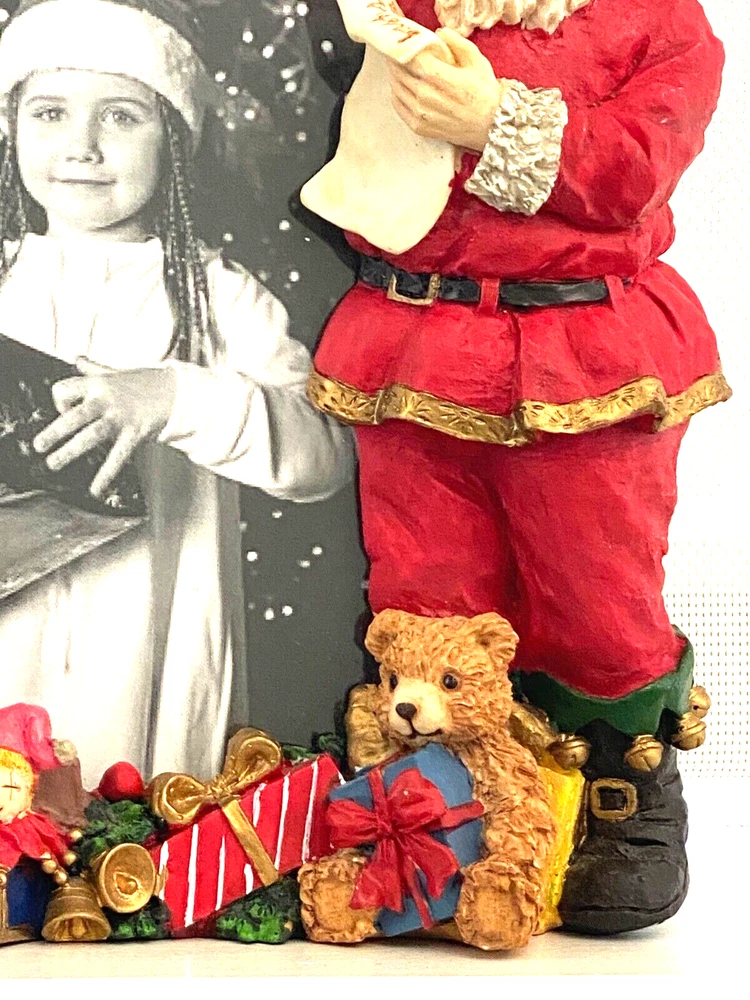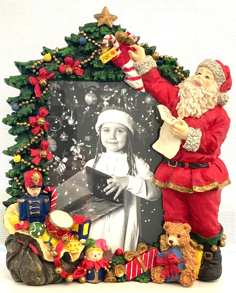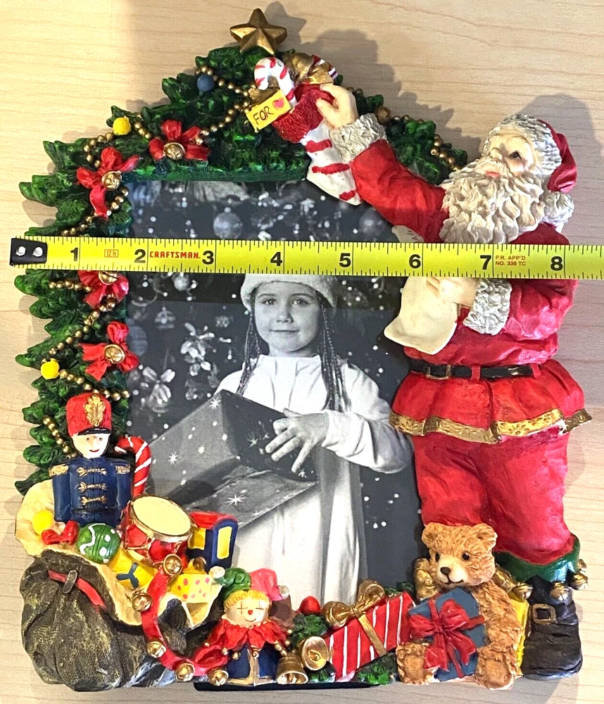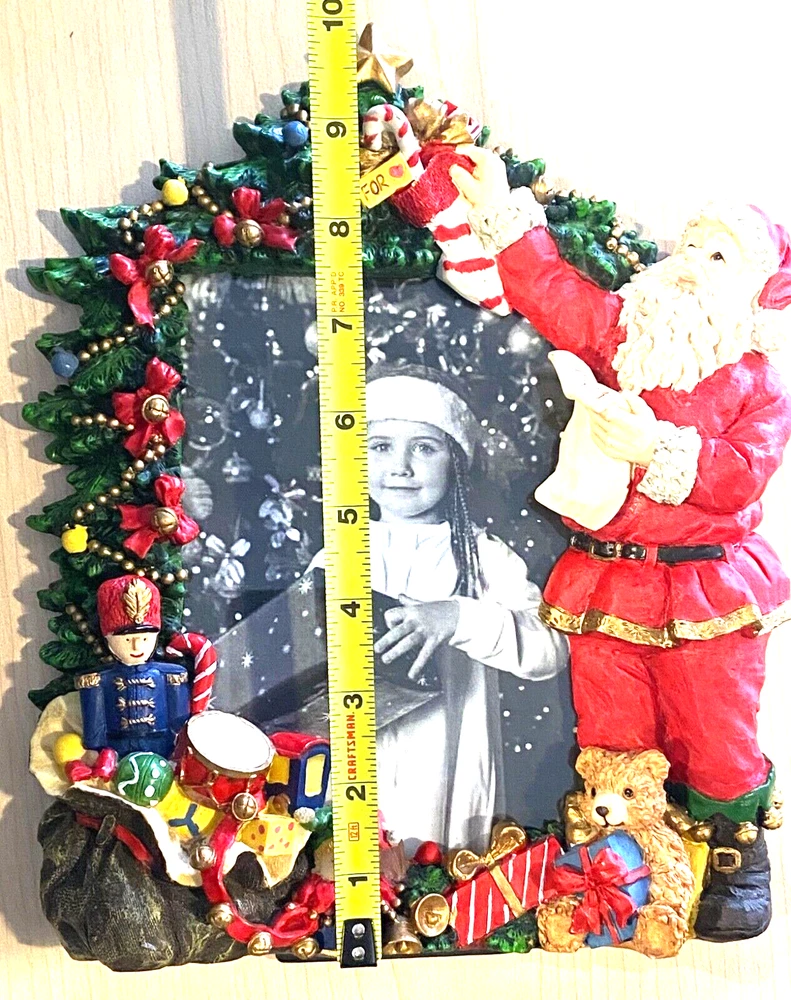 Color: Multicolor Mounting: Free Standing Item Width: 8 in Brand: Traditions Character Family: Christmas Themed Photo Frame Features: Ornate, 3D Size: 5 x 7 in Shape: Rectangle Item Length: 4 in Item Height: 10 in Style: Holiday Manufacturer Warranty: None Item Width (Interior): 5 in Type: Photo Frame Glass Type: Clear Glass Photo Capacity: 1 Material: Resin Character: Santa Occasion: Christmas Item Height (Interior): 7 in Pattern: Santa Nice List gtin13: Does not apply Power Source: Does not apply Theme: Holiday Finish: Matte Orientation: Portrait Photo Insertion Type: Rear-Loading Time Period Manufactured: 1990-1999 Suitable for Photo Size: 5 x 7 in Country/Region of Manufacture: Unknown Era: Late 20th Century (1970-1999) UPC: Does not apply