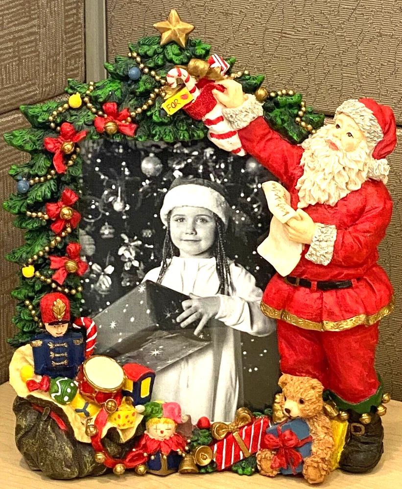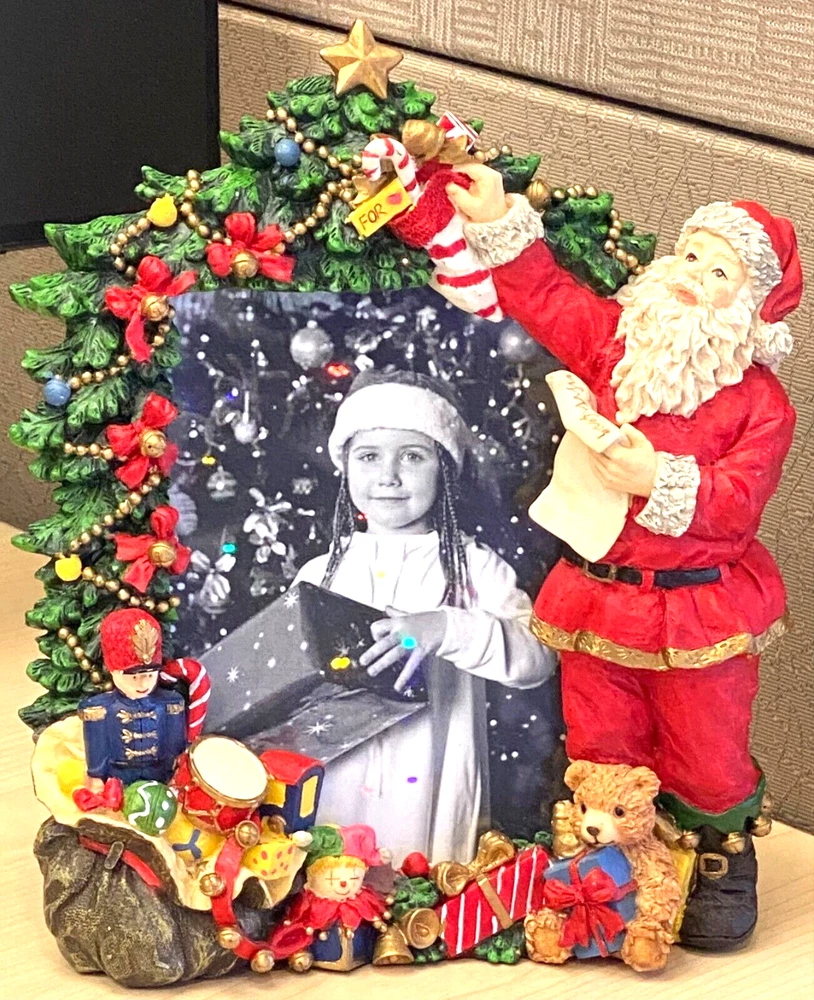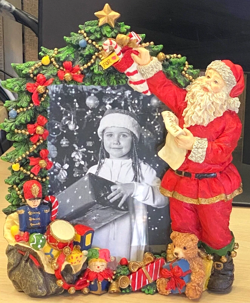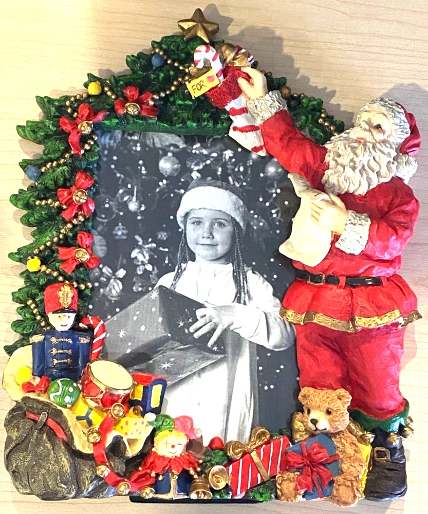 Color: Multicolor Mounting: Free Standing Item Width: 8 in Brand: Traditions Character Family: Christmas Themed Photo Frame Features: Ornate, 3D Size: 5 x 7 in Shape: Rectangle Item Length: 4 in Item Height: 10 in Style: Holiday Manufacturer Warranty: None Item Width (Interior): 5 in Type: Photo Frame Glass Type: Clear Glass Photo Capacity: 1 Material: Resin Character: Santa Occasion: Christmas Item Height (Interior): 7 in Pattern: Santa Nice List gtin13: Does not apply Power Source: Does not apply Theme: Holiday Finish: Matte Orientation: Portrait Photo Insertion Type: Rear-Loading Time Period Manufactured: 1990-1999 Suitable for Photo Size: 5 x 7 in Country/Region of Manufacture: Unknown Era: Late 20th Century (1970-1999) UPC: Does not apply