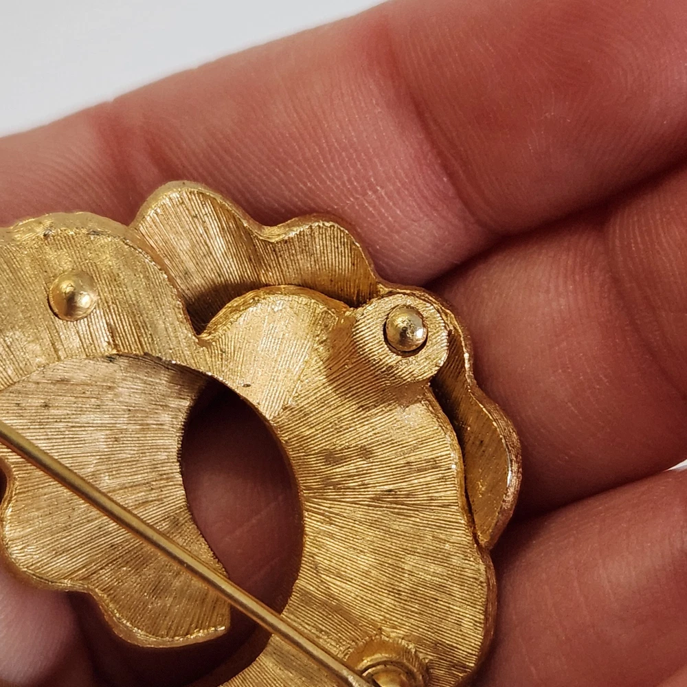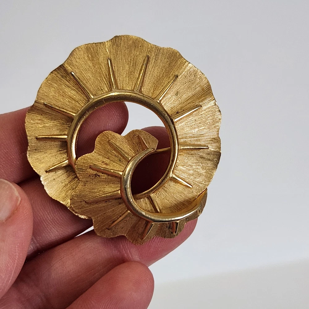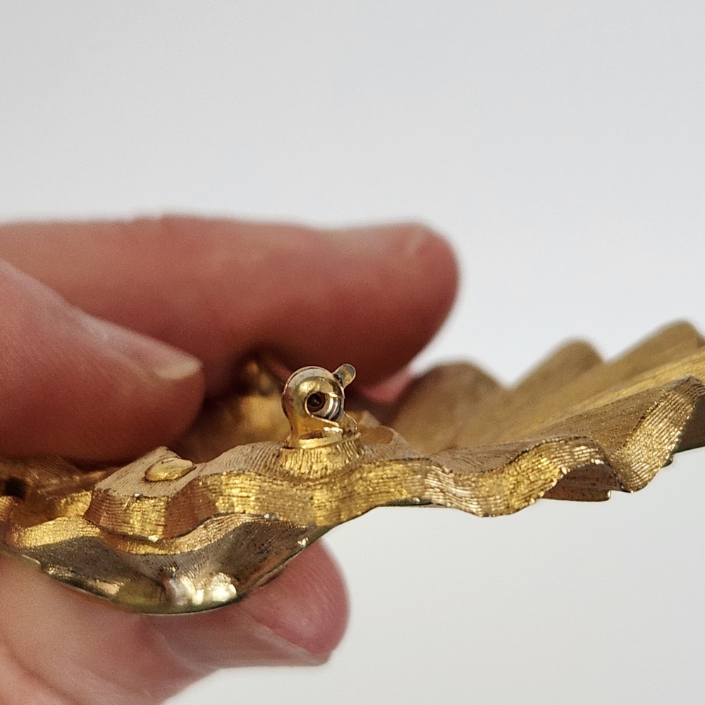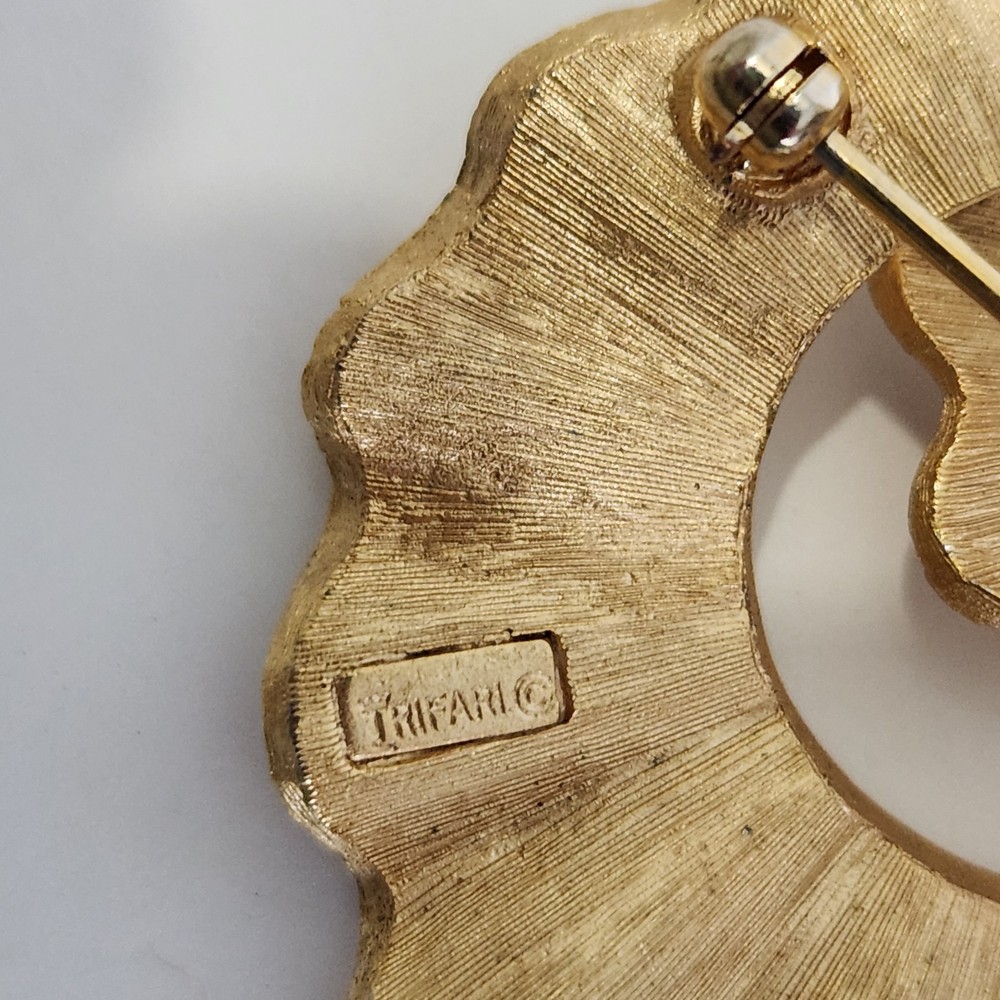 Crown Trifari Signed Brooch Modernist Shell Textured Goldtone Pin Vintage Signed. Condition is Pre-owned. Shipped with USPS Ground Advantage.