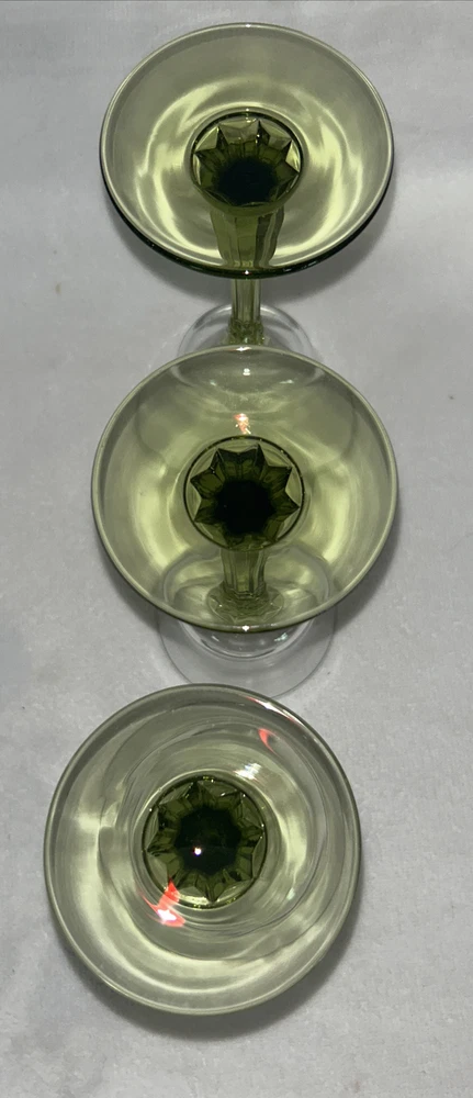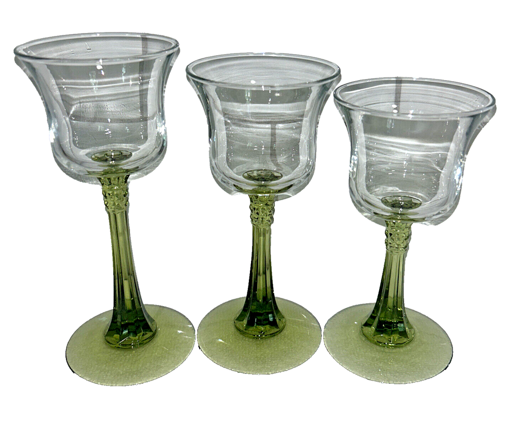 Partylite P7998 Radiant Glow Stemmed Trio Green Stem Clear Votive Candleholder. These are in like new condition with NO chips cracks or repairs. Please review all pictures for proper assessment of vintage preowned condition. Please note there is no original packaging.