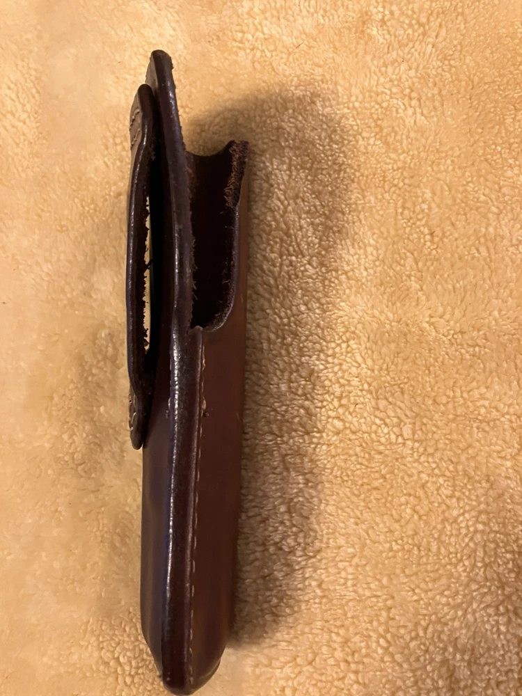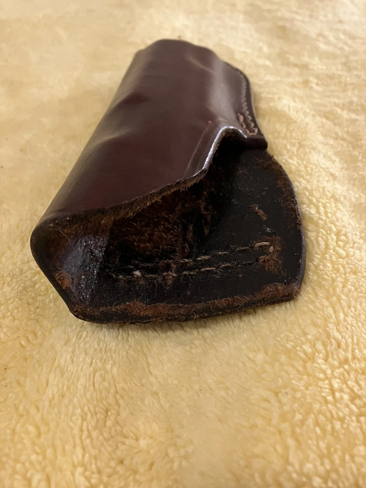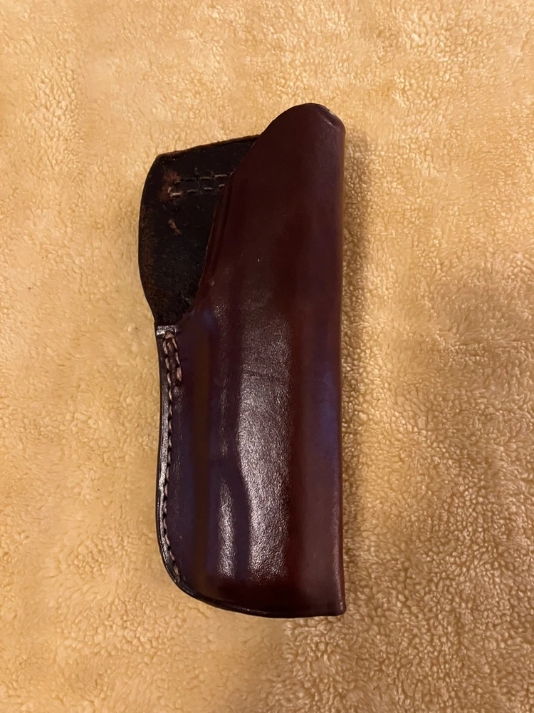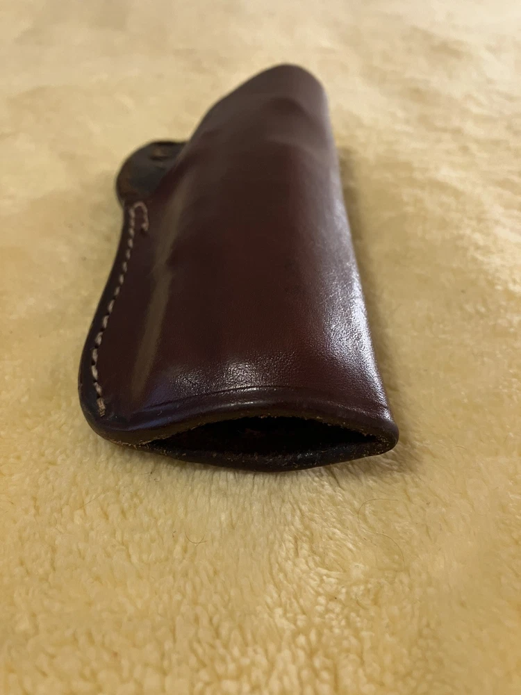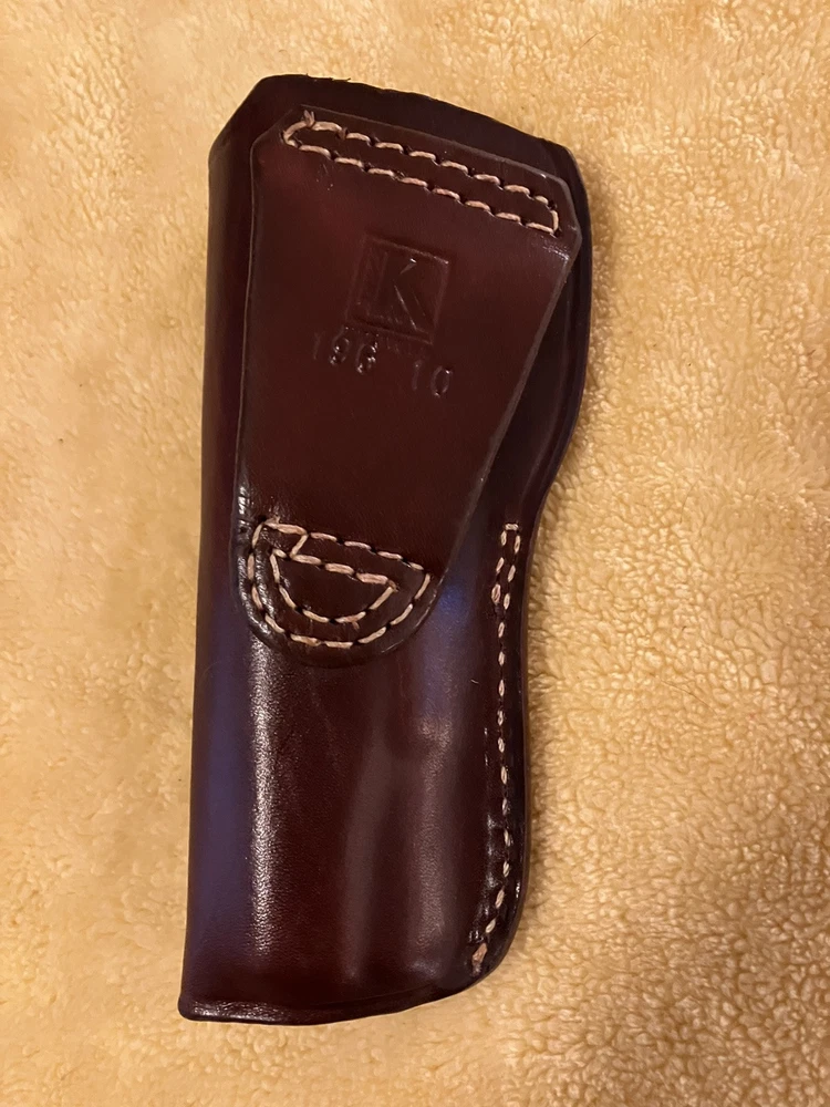 Triple K 196 10 leather holster. Appears to be for a 1911. The top thumb release has been cut off.
