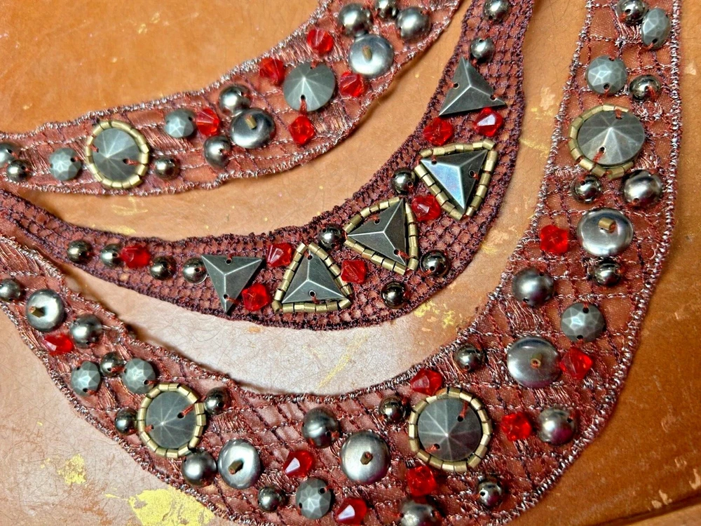 Vintage Triple Row Metallic Collar Hand Sewn 7x8 Studio Clearance Sale