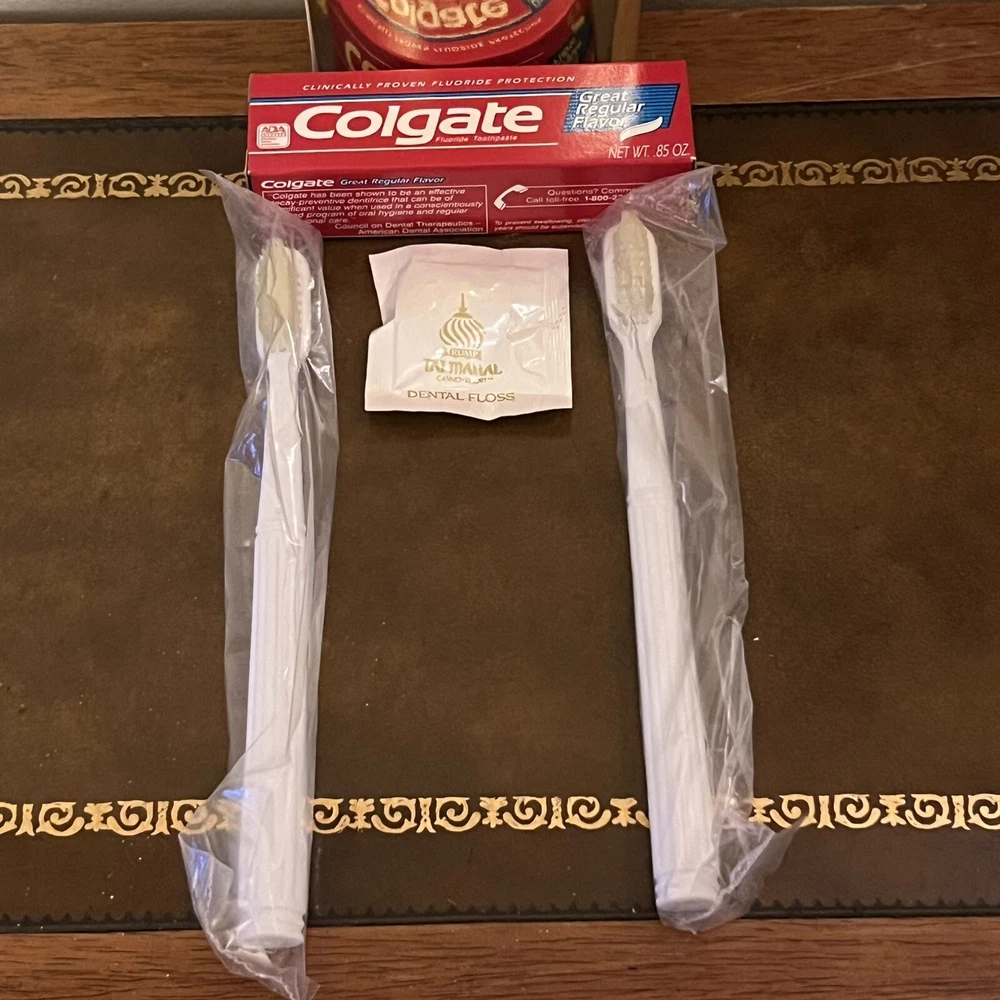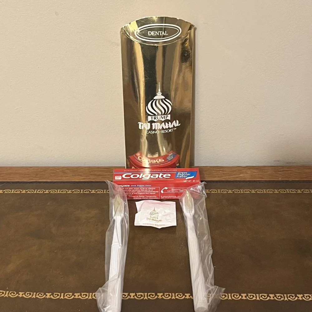 This vintage dental kit is a unique piece of memorabilia from the Trump Taj Mahal Casino. It features the iconic casino theme and is perfect for collectors of casino memorabilia. The kit includes everything needed for dental procedures and is a great addition to any collection.