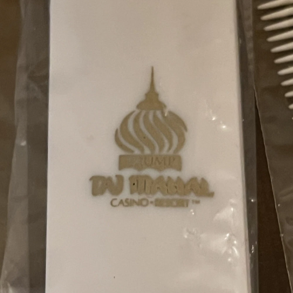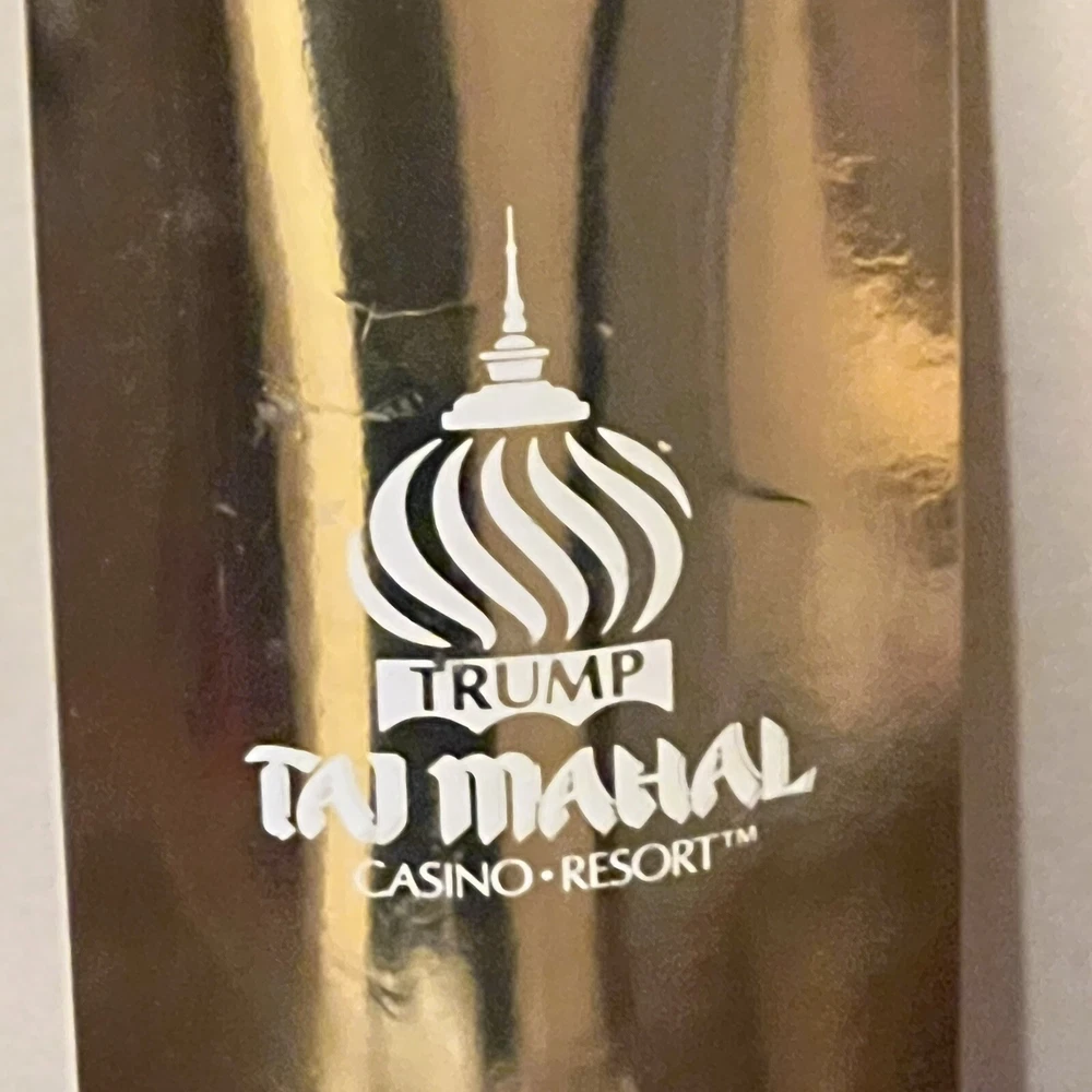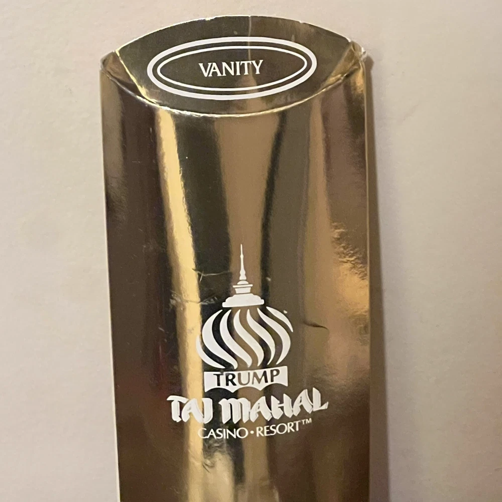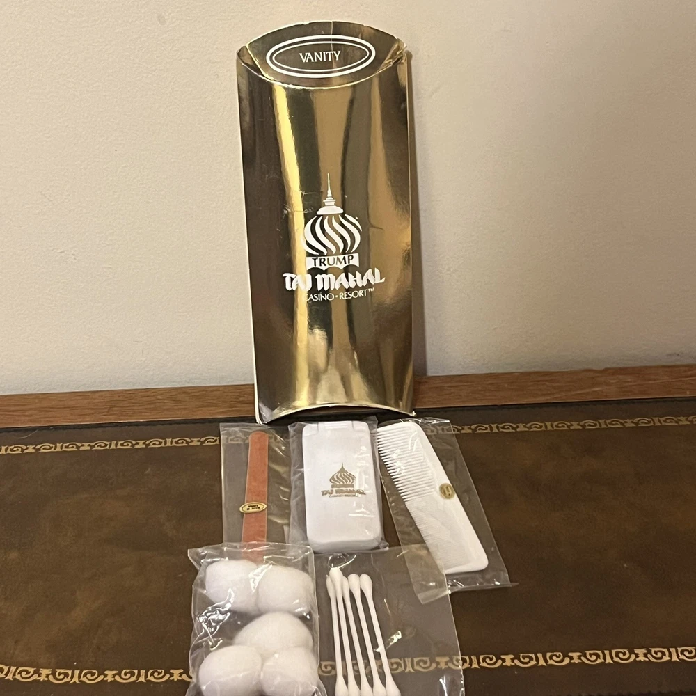 This vintage Trump Taj Mahal Vanity Kit is a must-have for any casino memorabilia collector. The kit features a beautiful design with intricate details that showcase the iconic Taj Mahal casino in Atlantic City, NJ. The kit includes all the necessary items for a complete vanity set, including a sink, faucet, and toiletries. It's perfect for displaying in your collection or for use in your daily routine. Don't miss out on the opportunity to own this unique and rare piece of casino history.