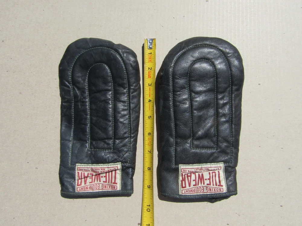 Up for sale is a pair of Vintage Tuf-Wear Bag Boxing Gloves. There is a couple of tears/holes in the leather.