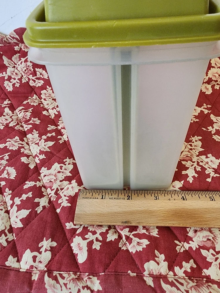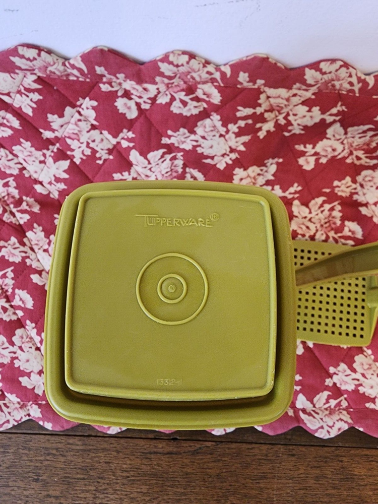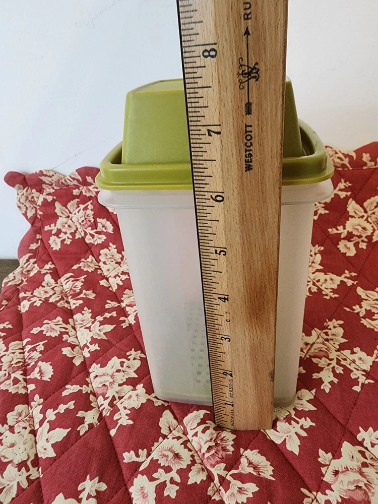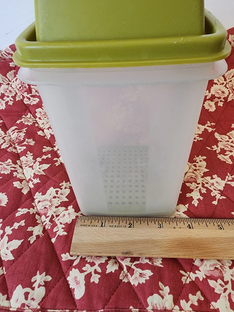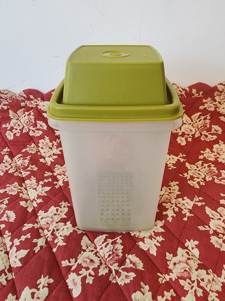 Love this vintage Tupperware pickle keeper—perfect size for pickles, olives, or even jalapeños! The avocado green lid gives it such a fun retro vibe, and it’s still in great shape with just minor wear. Super practical for keeping snacks fresh, and the airtight seal works like a charm. Clean, no odors, and exactly as pictured. A must-have for Tupperware collectors or anyone who loves reusable storage!