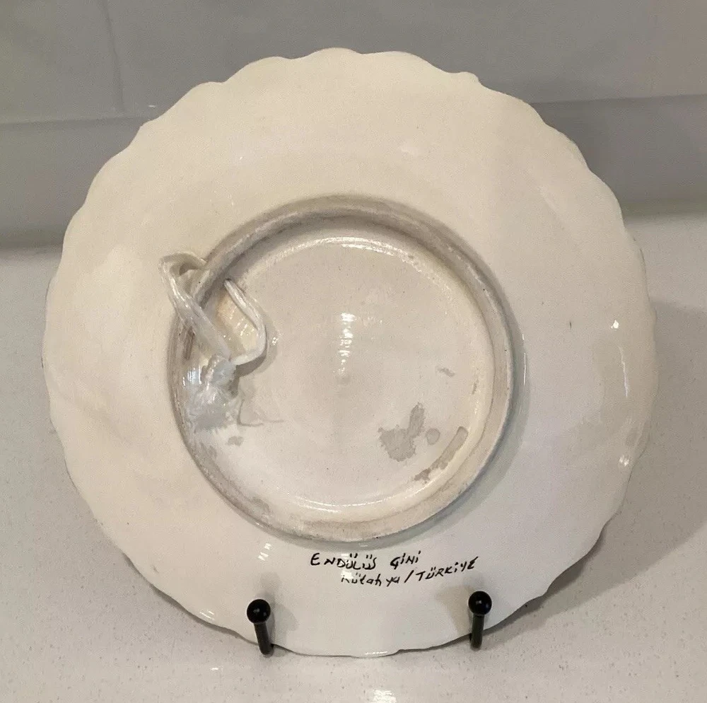 This vintage Turkish ceramic plate is a unique addition to any collection. The round plate measures 8.25 inches in diameter and features a beautiful hand-painted sea life pattern in multicolor. The plate has a glossy finish and is made with care by Turkish artisans using traditional pottery techniques. The plate is perfect for all occasions and will add a touch of vintage/retro style to any home décor. It is an original piece and comes with care instructions to ensure longevity. The plate is handmade and hand painted, making it a one-of-a-kind item from Turkey. There’s no chips, cracks, and or crazing. The plate is in beautiful condition and will be very carefully packed for shipping.