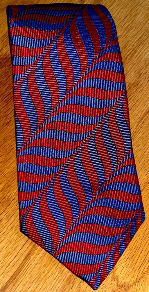 Vintage Turnbull & Asser London England Mens Tie Red & Blue Wavy Lines 100% Silk Handmade Luxury Tie Classic Size 57” Long 4” Wide Great Overall Condition Very Nice To Add To Any Tie Collection Please See All Pics As Part Of Full Description