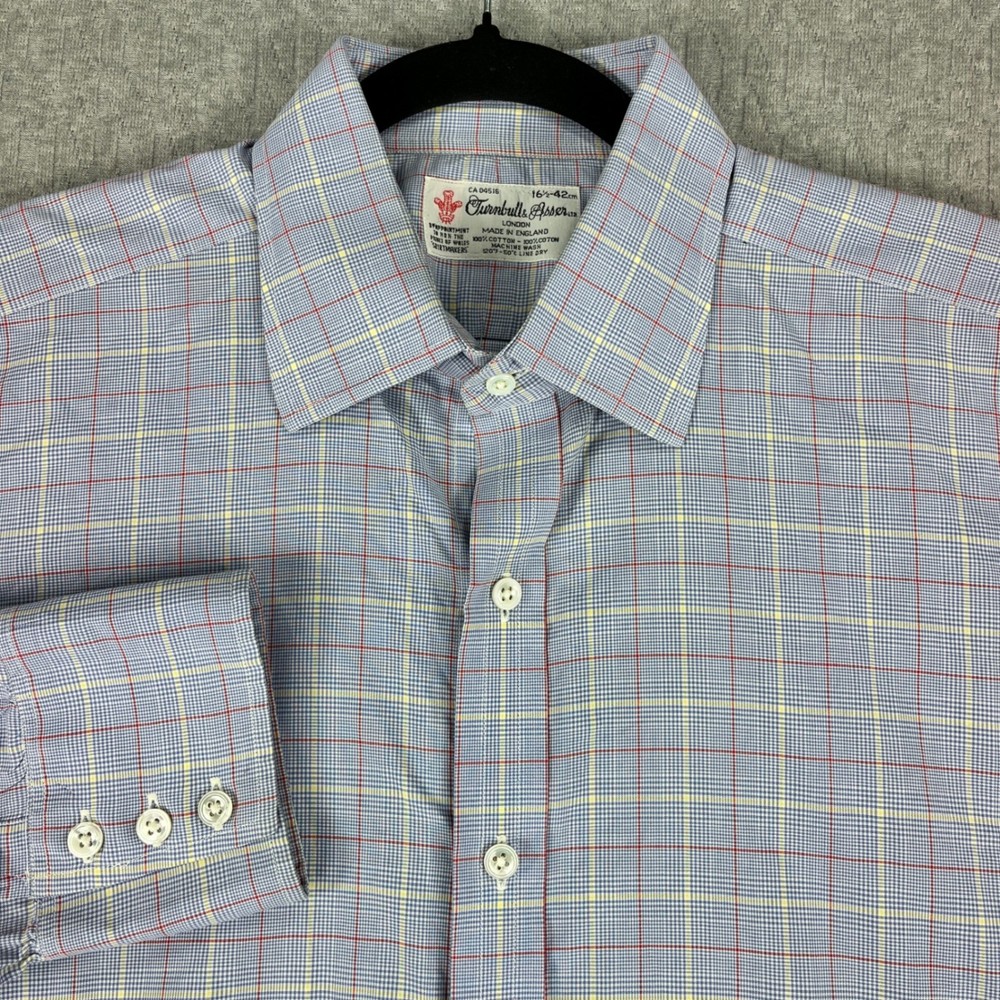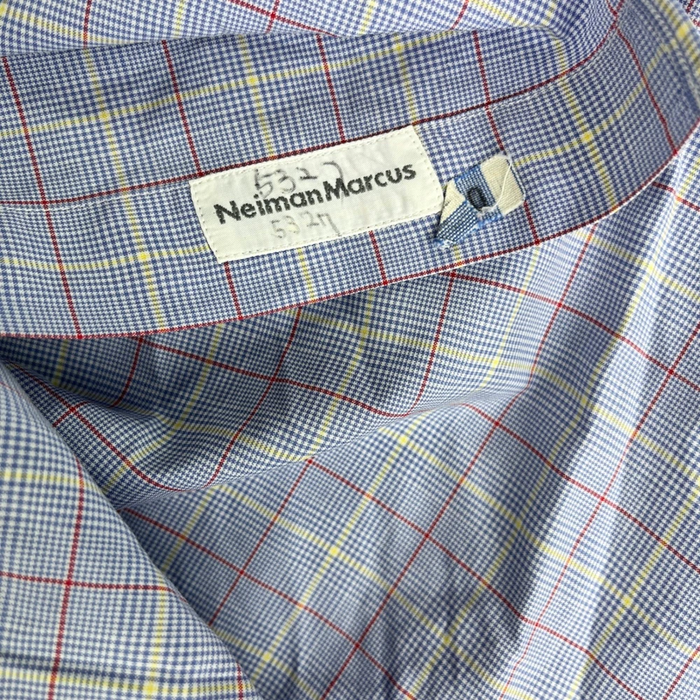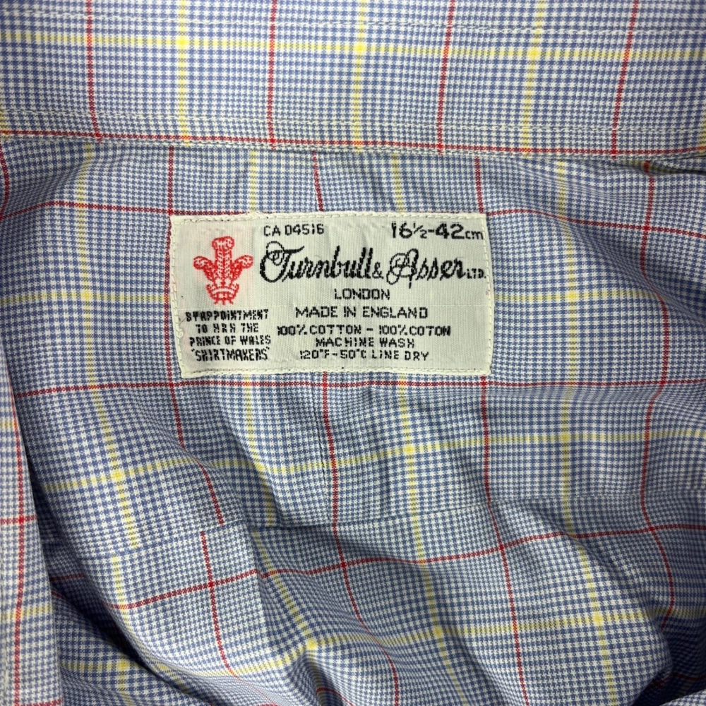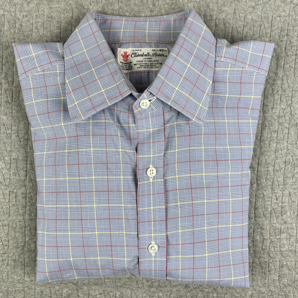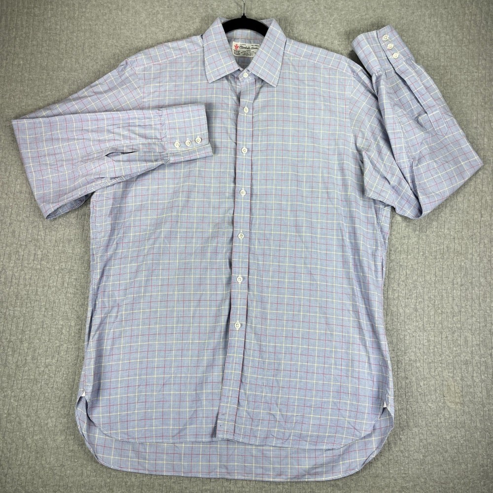 Great Vintage condition London made in England Prince of Wales shirt makers please examine all photos for flaws measurements and exact fit. All items are shipped out daily Monday through Friday. Thank you. Keywords: British Heritage, Savile Row, Luxury, Royal Warrant, Jermyn Street, Preppy, Ivy League, Business Casual, Old Money, Classic, Neiman Marcus, Made in England, Tattersall, Designer Dress Shirt, Formalwear