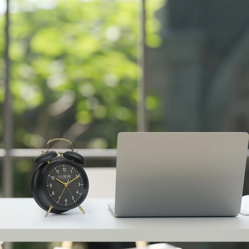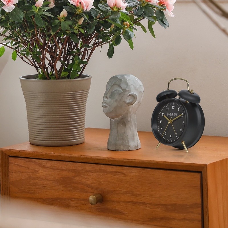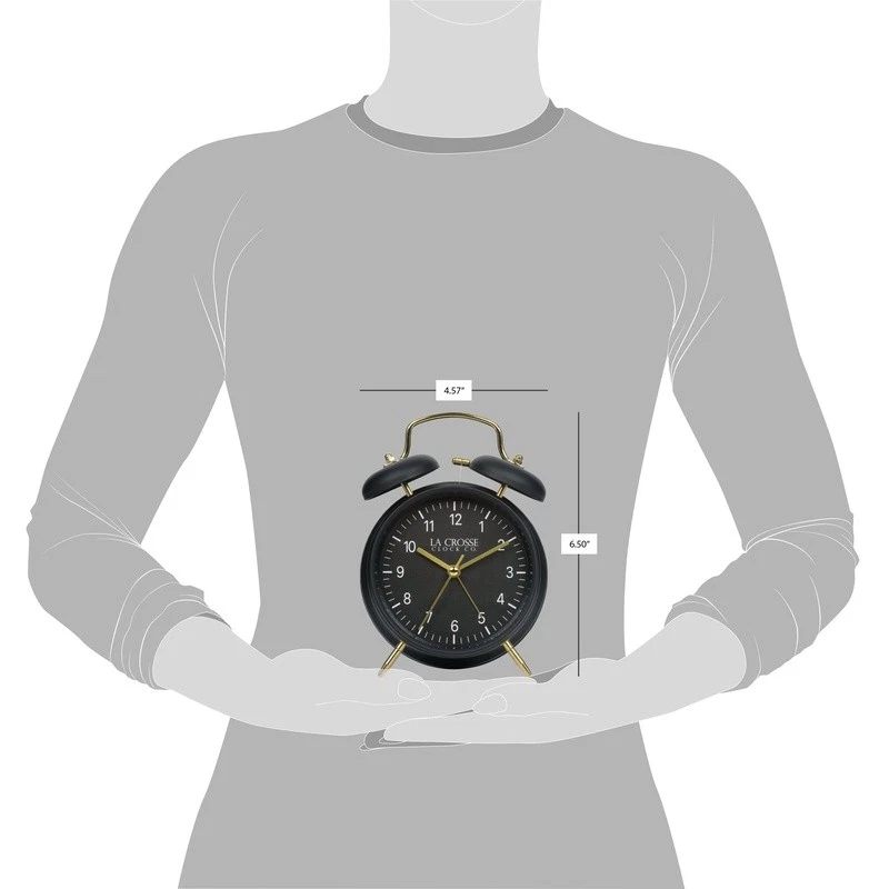 You may also like LED Mirror Alarm Clock W/ Snooze USB Charging Portable Digital Time Display 15.2 USD 16.0 USD Free shipping 5% off Digital Dual Alarm Clock W/ Green LED Display Snooze Function Battery Backup New 18.18 USD 19.14 USD Free shipping 5% off Digital Alarm Clock W/ Adjustable Brightness Night Light USB Durable Indoor Home 27.34 USD 28.78 USD Free shipping 5% off Digital Travel Alarm Clock Fold-up Snooze Timer Backlight Battery Operated New 19.12 USD 20.13 USD Free shipping 5% off Night Vision Alarm Clock Digital Glow Backlight Snooze Battery Operated New 23.33 USD 24.56 USD Free shipping 5% off Vintage Analog Alarm Clock Quiet Sweep Night Light Beeping Alarm Snooze New 29.43 USD 30.98 USD Free shipping 5% off SmartSet Dual Alarm Clock Radio Bluetooth Speaker USB Port LED Pulse Music 37.87 USD 39.86 USD Free shipping 5% off Dual Alarm Clock 1.8in LED Display Brightness Control Battery Backup Functions 28.42 USD 29.92 USD Free shipping 5% off SmartSet Dual Alarm Clock Radio Bluetooth USB Charger Night Light LED Display 20.46 USD 21.54 USD Free shipping 5% off Analog Alarm Clock Beep Snooze Quiet Sweep Luminous Hands Quartz Mid-Century New 38.21 USD 40.22 USD Free shipping 5% off Digital Table Wall Clock 12Hour Display Alarm Snooze Function Calendar Indicator 17.2 USD 18.11 USD Free shipping 5% off LCD Travel Alarm Clock Self-setting Snooze Function Backlight Date Display New 17.27 USD 18.18 USD Free shipping 5% off La Crosse Clock Company brings back a classic styled black twin bell alarm clock. Attractive black metal case wraps a black dial with easy to read Arabic numerals and a gold colored touchs. Metal hands rotate beneath glass lens. Loud twin bell alarm sound prompts you to get moving. Don’t let the old fashion design fool you. Inside this classic design is a precise quartz movement to ensure accurate time keeping. Manual set dials adjusts the time and alarm. Operates on one AA alkaline (not included) battery. Classic Metal Twin bell Design Durable metal case with gold accents Analog dial Loud bell time alarm Quartz step movement Glass lens & metal hands including secondhand Requires one AA alkaline battery (not included) Suitable for Adult, Senior, Teen, Tween You may also like Night Vision Alarm Clock Digital Glow Backlight Snooze Battery Operated New 23.33 USD 24.56 USD Free shipping 5% off Digital Alarm Clock Red LED Display Snooze Function Battery Backup AC Powered US 22.07 USD 23.23 USD Free shipping 5% off Portable 6-Band Shortwave AM FM Radio Digital Alarm Clock W/ Sleep Timer Snooze 29.24 USD 30.78 USD Free shipping 5% off Kyoda Beep Alarm Clock Analog Quartz Light Snooze Luminous Quiet Sweep Design US 31.79 USD 33.46 USD Free shipping 5% off Digital Deep Sleep Alarm Clock 1.4in LED Display Snooze Function Battery Backup 17.01 USD 17.91 USD Free shipping 5% off Electric Night Table Clock Easy Read LED Display Snooze Battery Backup New 23.39 USD 24.62 USD Free shipping 5% off Digital AM FM Alarm Clock Radio W/ 1.8 Inch LED Display Dual Alarm AUX Input New 29.14 USD 30.67 USD Free shipping 5% off Vintage Analog Alarm Clock Quiet Sweep Night Light Beeping Alarm Snooze New 29.43 USD 30.98 USD Free shipping 5% off USB Alarm Clock W/ Blue LED Snooze Function Battery Backup Charging Port 21.87 USD 23.02 USD Free shipping 5% off Dual Alarm Clock Radio AM FM USB-C Charging LED Display SmartSet Technology 28.98 USD 30.5 USD Free shipping 5% off FM Digital Dual Alarm Clock Radio USB Port Snooze Sleep Timer Display Control 28.86 USD 30.38 USD Free shipping 5% off Digital Alarm Clock Radio Large Display Dual Wake FM Radio Snooze Backup Battery 29.43 USD 30.98 USD Free shipping 5% off