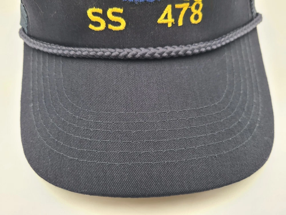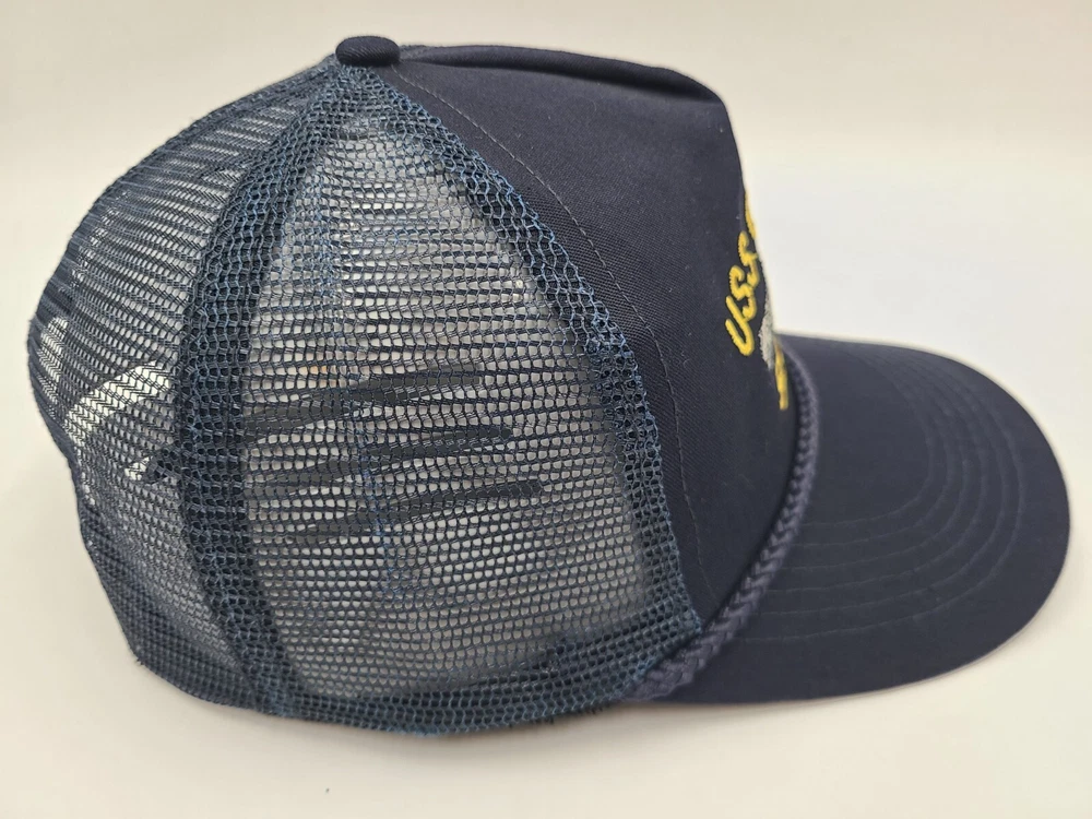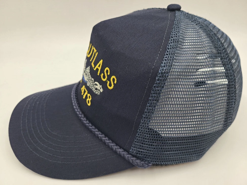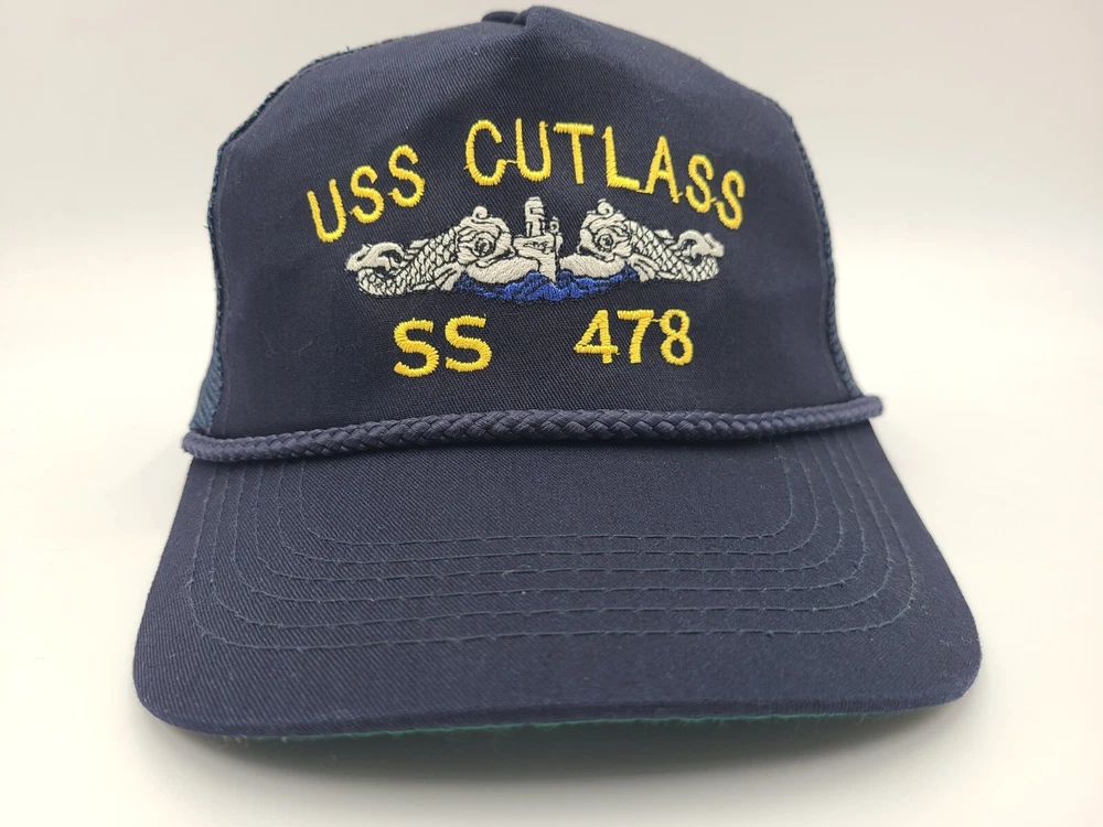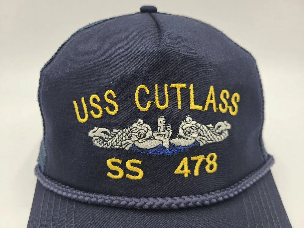 Vintage US Navy USS Cutlass SS 478 Rope Mesh Trucker Snapback Hat Cap Men Blue. EACH ADDITIONAL HAT PURCHASED IS ONLY $1 ADDED SHIPPING!
