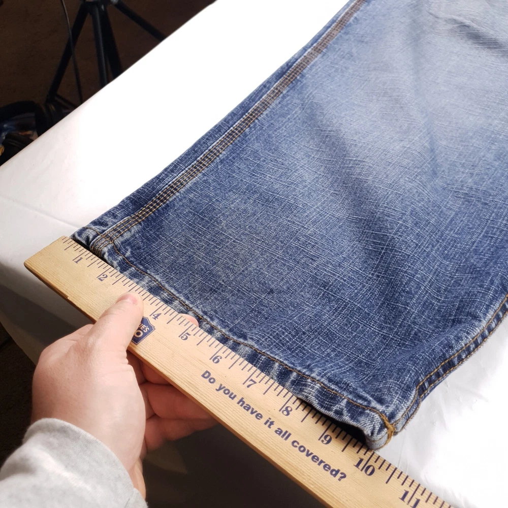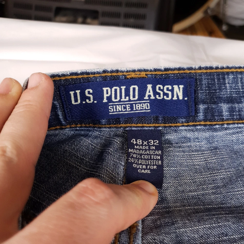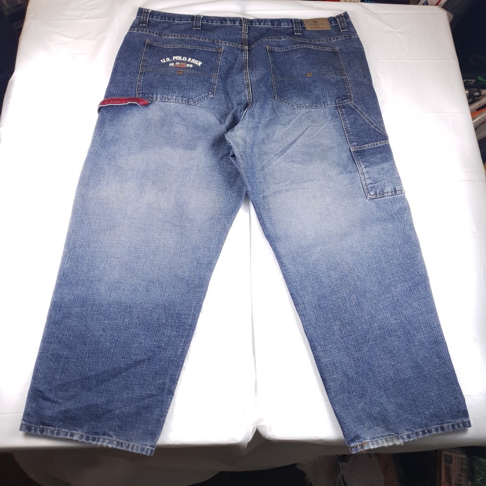 These vintage US Polo Assn jeans are a great find for anyone who loves the Y2K grunge skater style! The baggy carpenter fit is huge and super comfortable, perfect for a laid-back look. Just be sure to check the measurements in the photos since sizing can vary. The stain shown in pic 5 is minor and adds to the vintage charm. Awesome deal for the price!