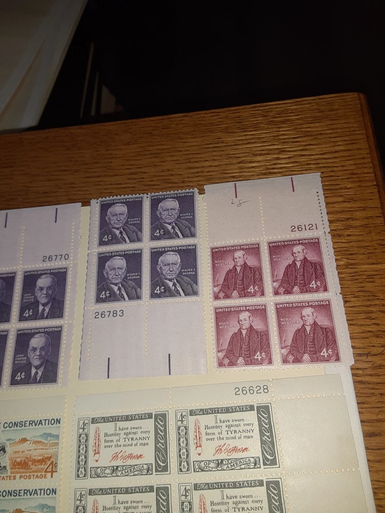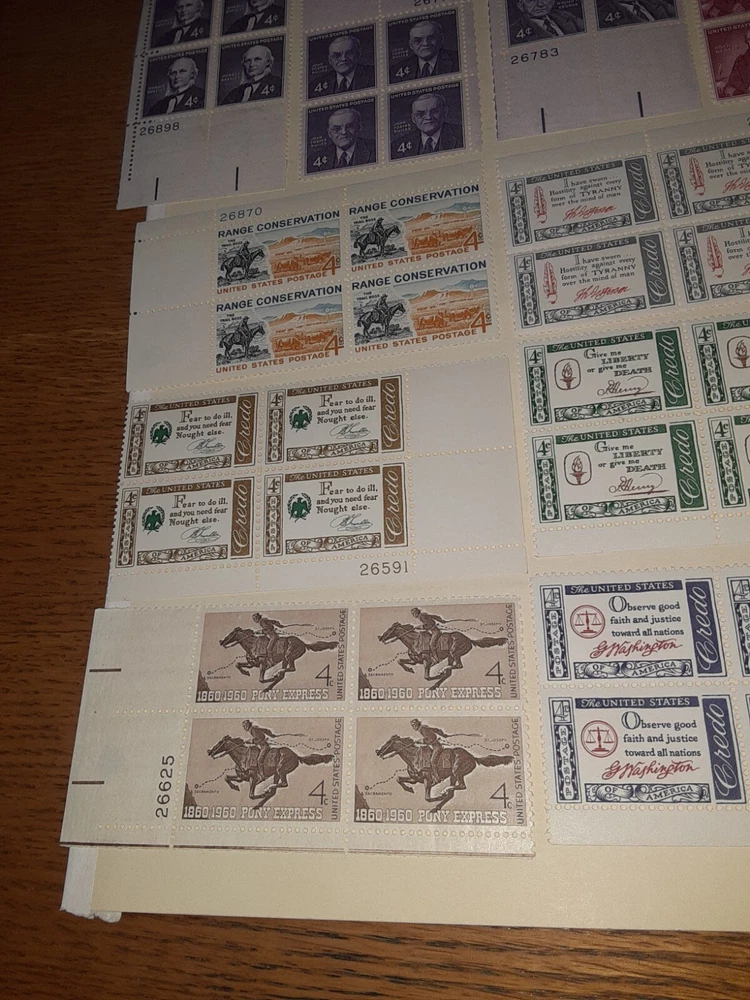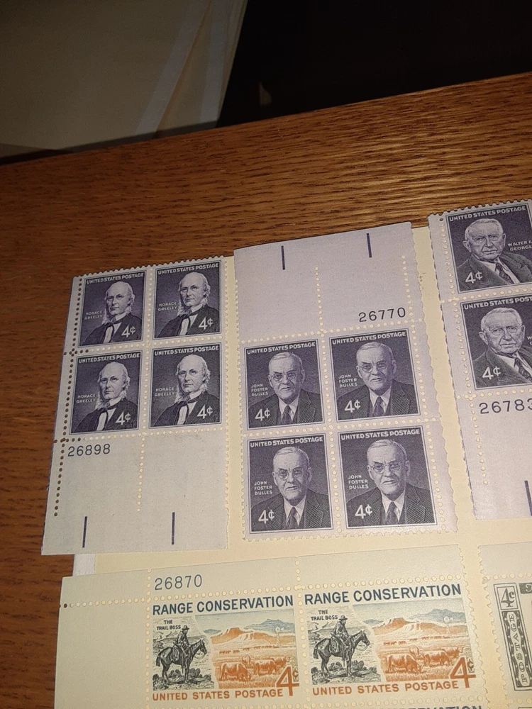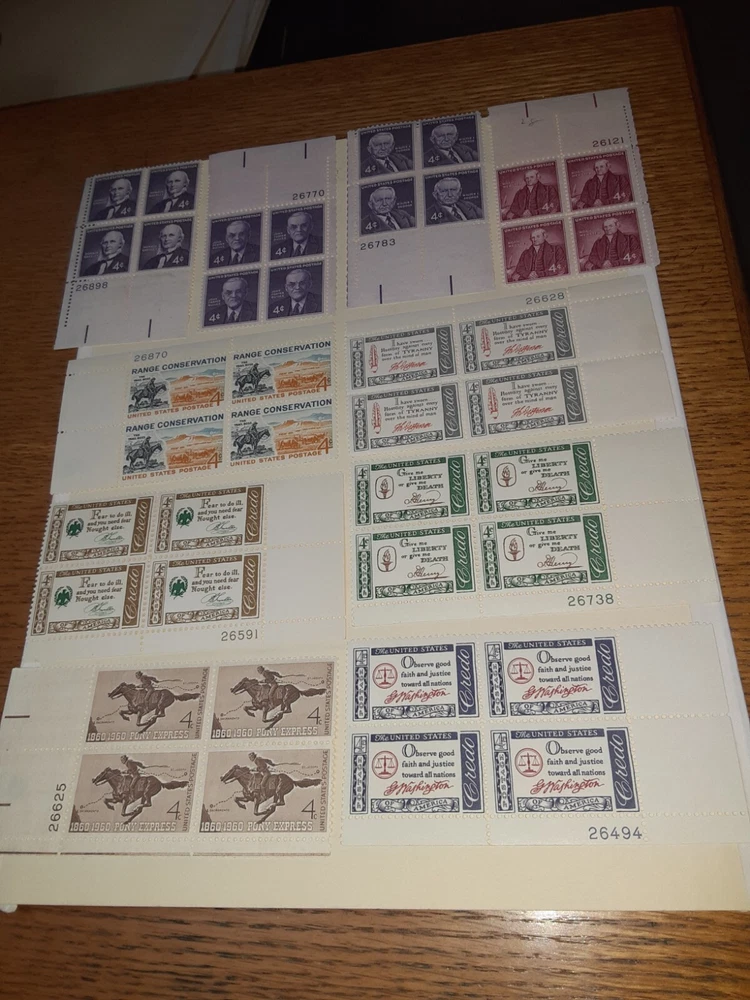 This is a collection of US stamps, featuring 20 MNHOG 4c Plate Blocks. The stamps are of original gum and have never been hinged, making them a great addition to any collection. The certification of the stamps is uncertified. The collection is ungraded and the place of origin is the United States. The stamps are perfect for collectors who are looking to add a unique and rare item to their collection. The 20 MNHOG 4c Plate Blocks provide an opportunity to own a piece of history and to showcase your love for US stamps. This collection is a must-have for any stamp collector and is sure to impress.
