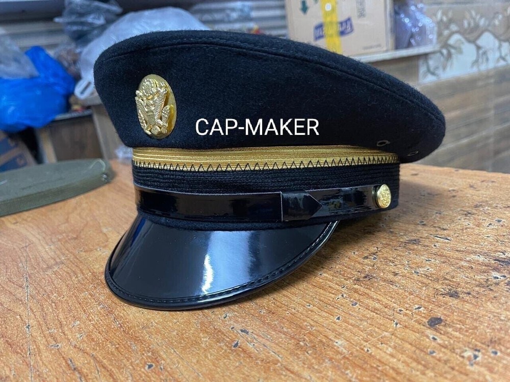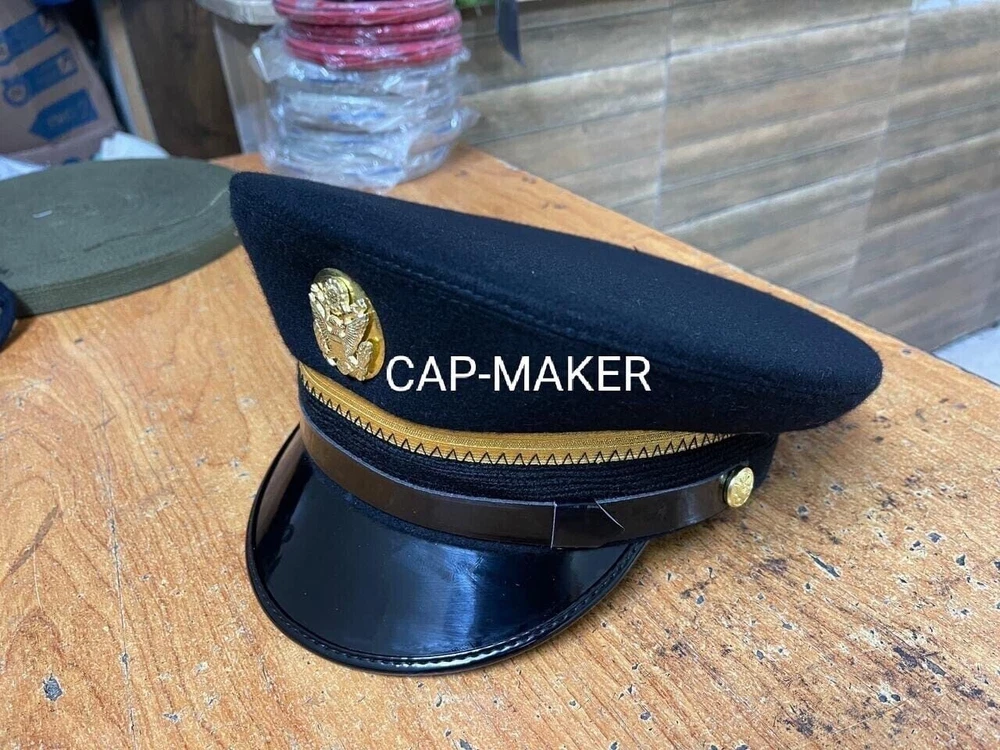 Discover a piece of military history with our Vintage U.S. Air Force Officer Fur Felt Enlisted Dress Blue Service Cap. This authentic cap, dating back to a period of significant historical events, showcases the classic design and craftsmanship typical of military headgear from the era. Made in the United States, it's a testament to the quality and durability required of service cap materials. Size 10.24 ensures a comfortable fit for a variety of head sizes, while the unmodified condition preserves the originality of this military memorabilia. Whether you're a collector, a reenactment enthusiast, or someone with an appreciation for vintage militaria, this cap is a distinguished addition to any collection.