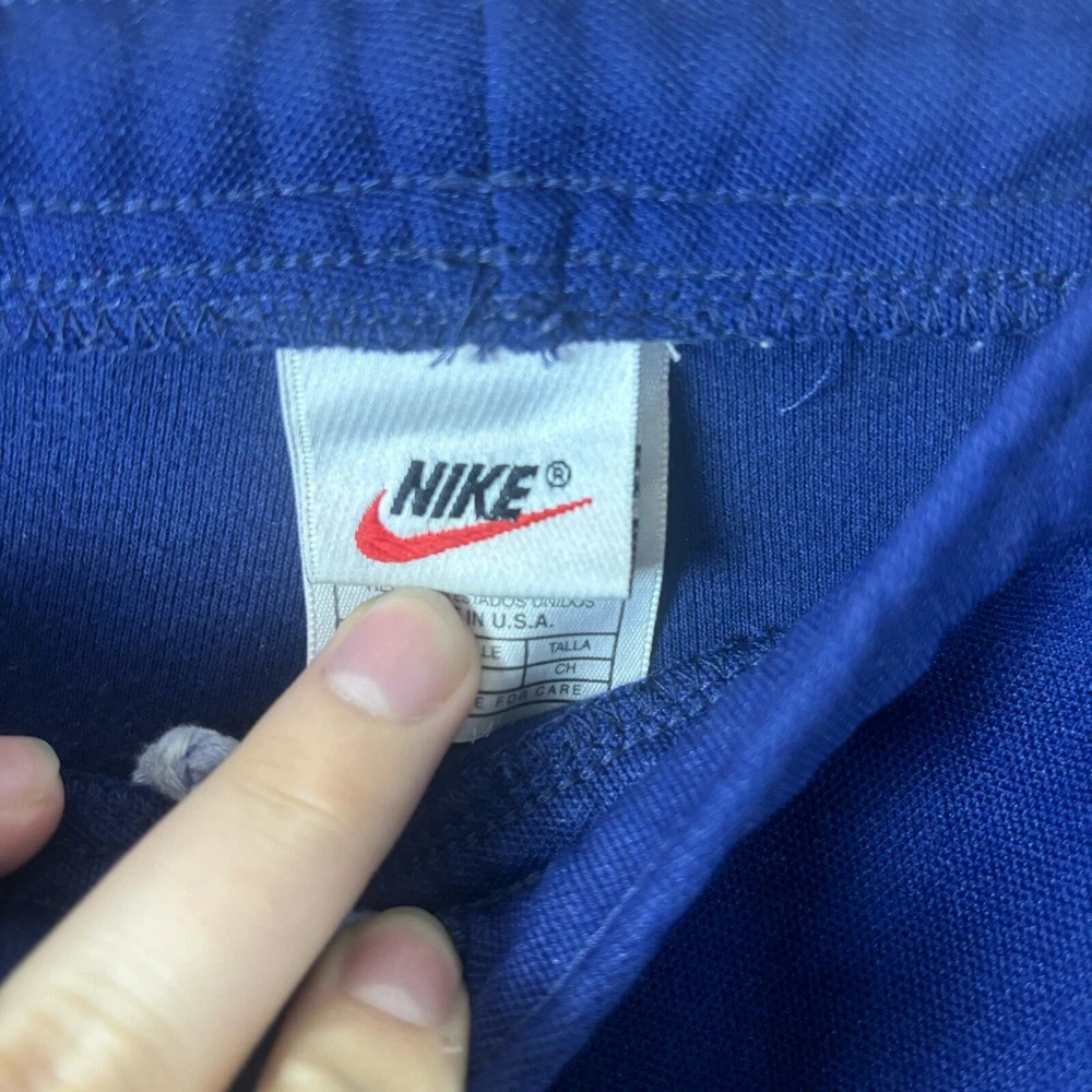 Navy blue vintage nike athletic workout track pants, mens size S. It has a small snag on it, but otherwise great condition, no holes or stains. Has a mid-calf pant leg zipper. It's been washed before listing Please reference photos before purchasing