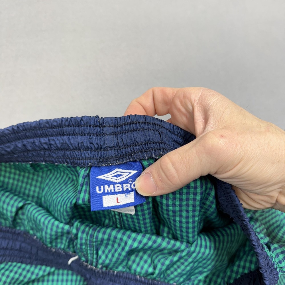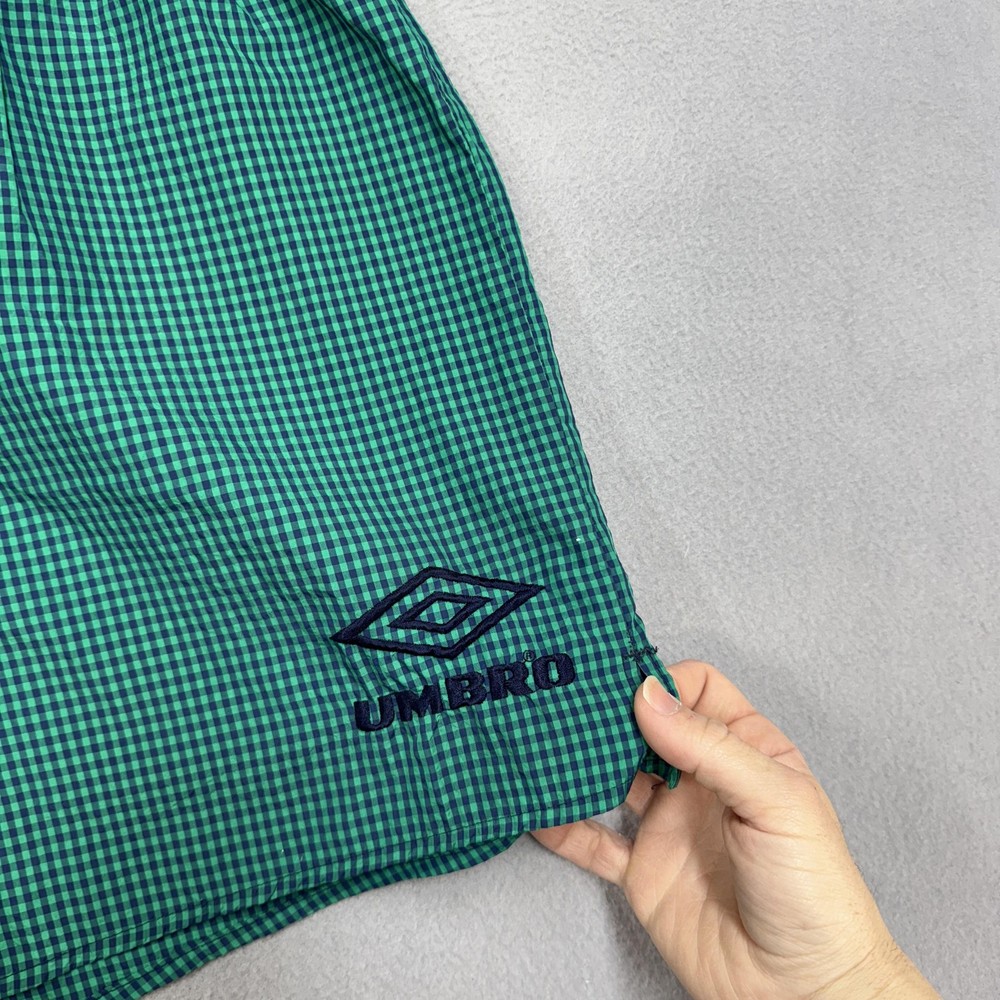 Vintage Nike Shorts mens small Blue Black Nylon 90s swoosh streetwear 4" inseam