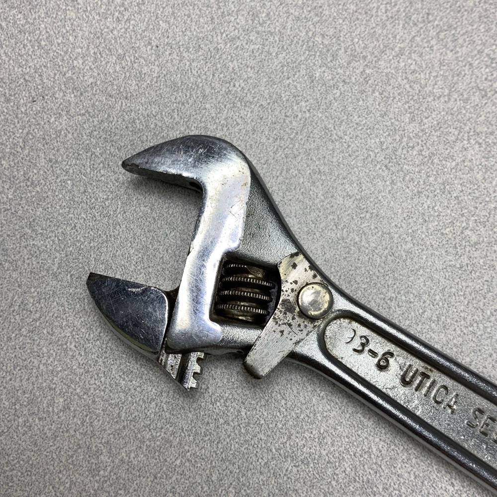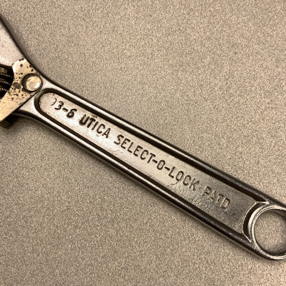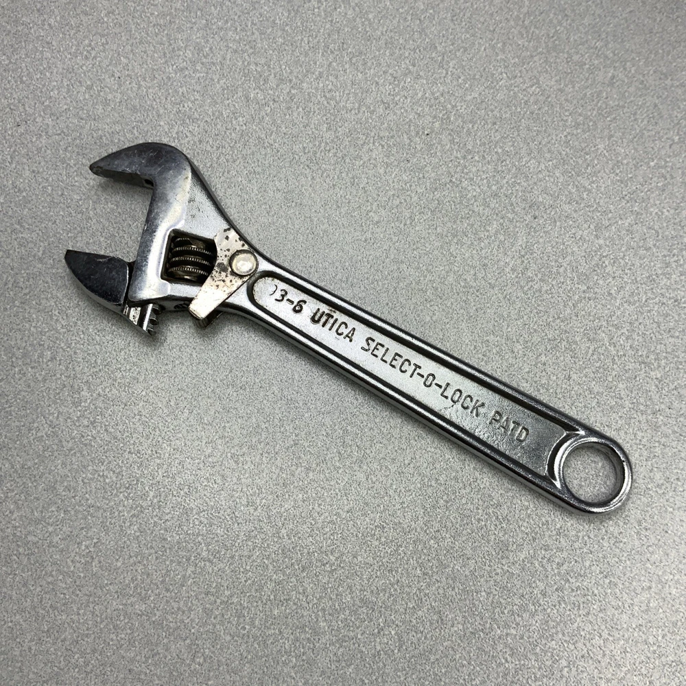 Vintage Utica 93-6 Adjustable Wrench SELECT-O-LOCK Forged Alloy Steel. Moves freely. See pics