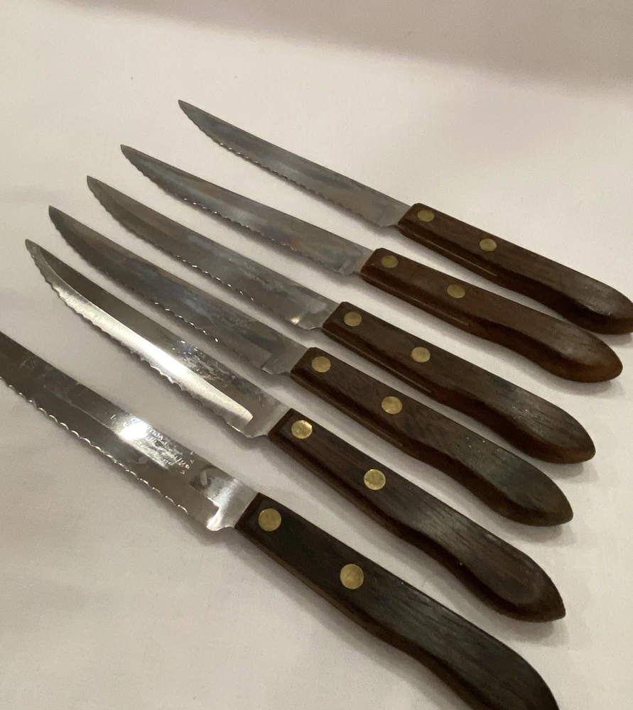Vintage Utica Super Edge Stainless Steel Steak Set in Wooden Holder Set of 6