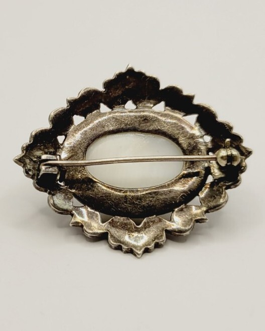 Vintage Victorian 925 Sterling Silver Faux Pearl Marcasite Brooch Pin