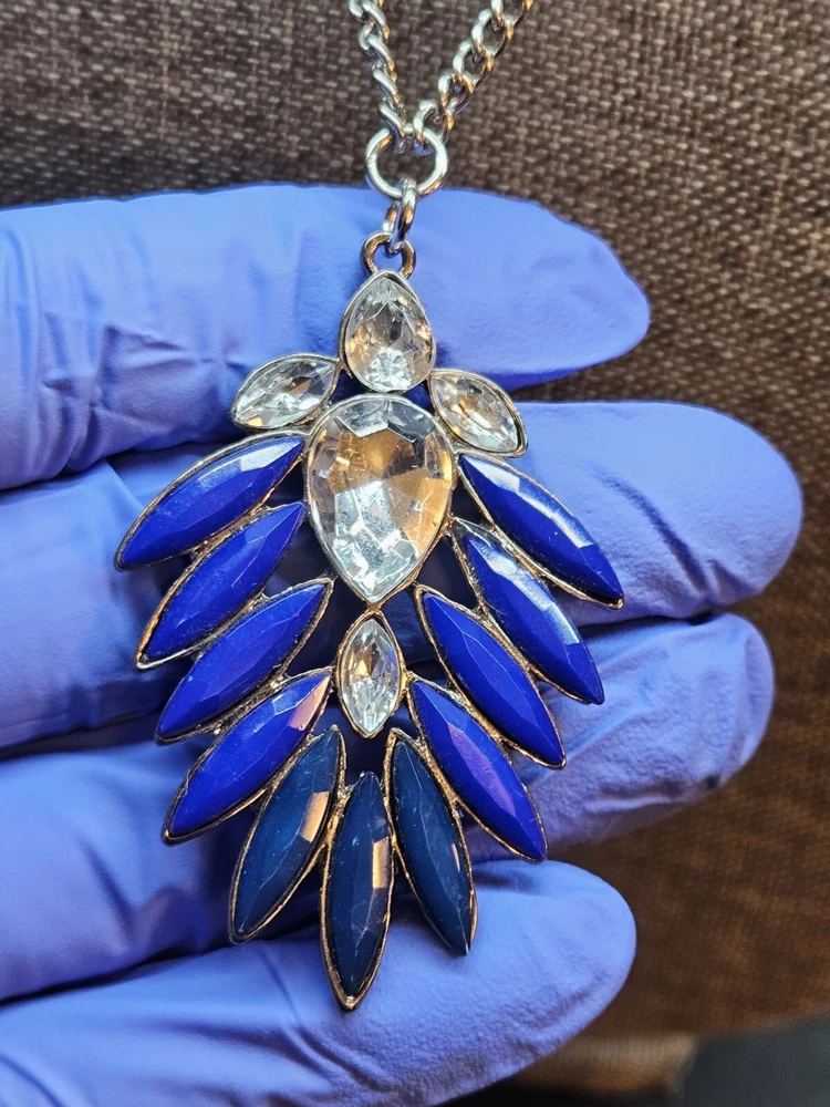 Buy and get free jewelry!! Selling a beautiful ONE of a kind Vintage Silver Tone Victorian Style Royal Blue Rhinestone Necklace. This necklace is 20 3/4" inches long, This is a handmade and Hancrafted necklace and is the only one that exists, Please see pictures for condition and size, free fast shipping!!