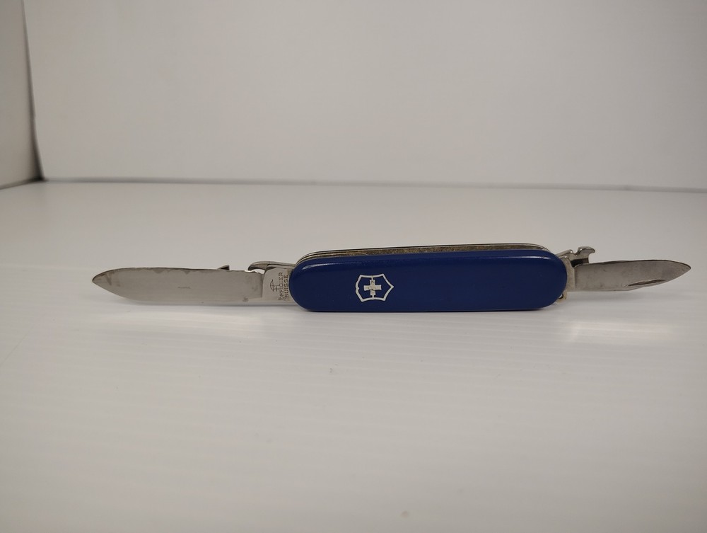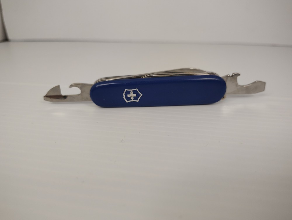 Lock Type: Lever Blade Type: Mixed Model: Victorinox Swiss Army Brand: Victorinox Dexterity: Ambidextrous Tools: Bottle Opener Original/Reproduction: Original Type: Tactical Product Line: Victorinox Merit Blade Edge: Plain Blade Material: Stainless Steel Country/Region of Manufacture: Switzerland Opening Mechanism: Manual Seller Notes: “Overall good condition with signs of wear.” Blade Range: Under 2.75in. Modified Item: No Handle Material: Plastic Color: Blue