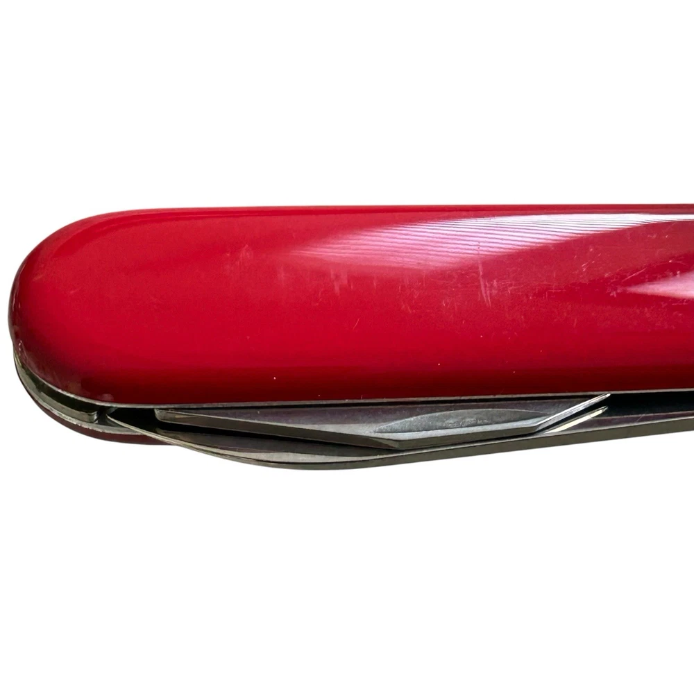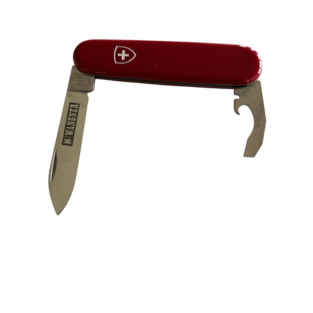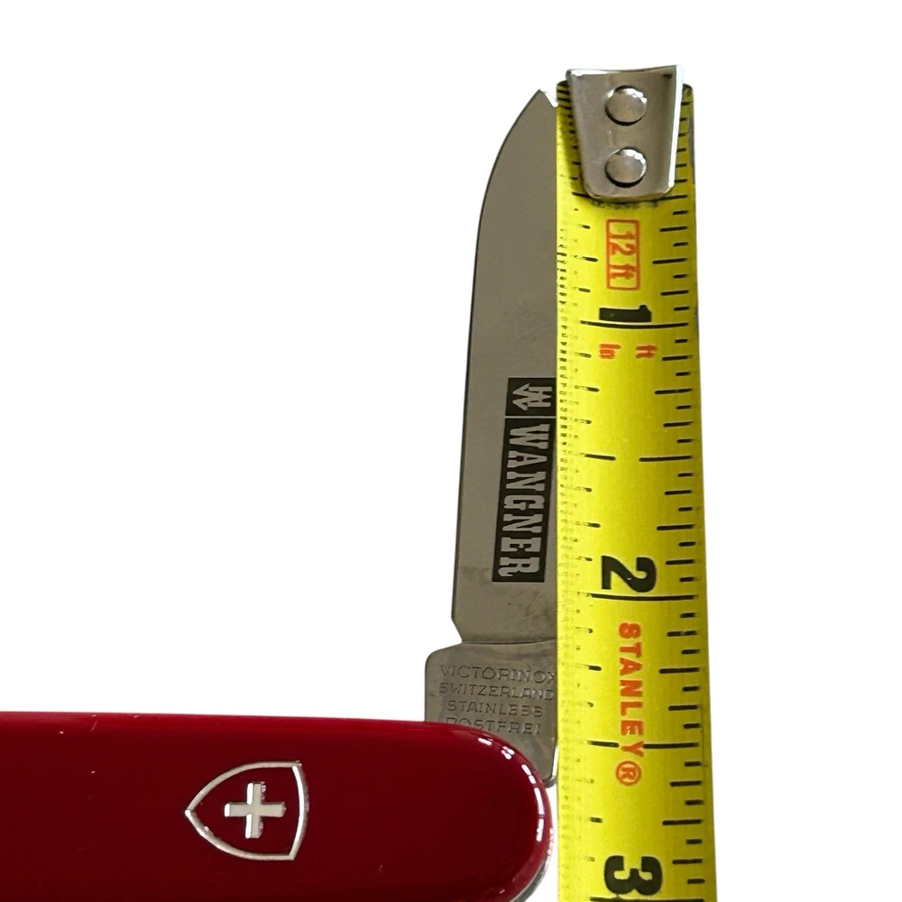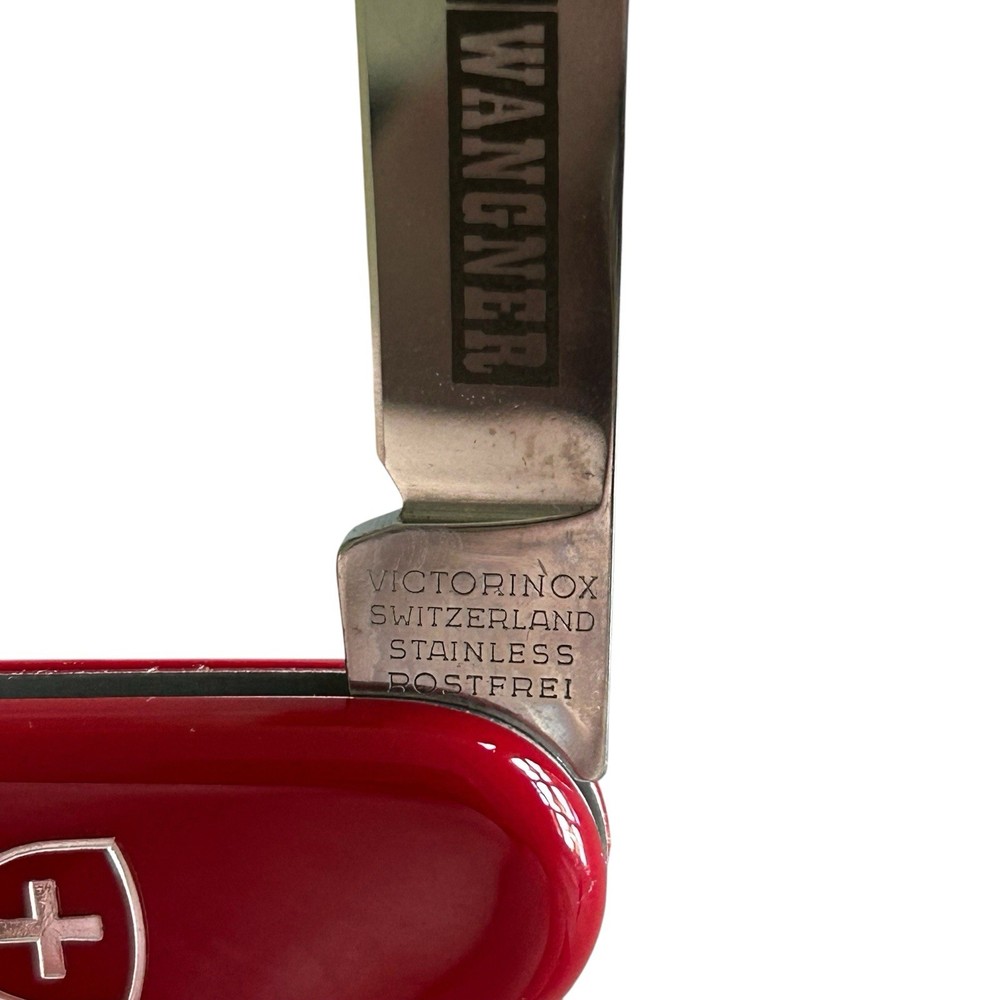 Vtg Victorinox Swiss Army Knife Red Bantam 84mm 2.2300 Wangner Advertisement. Good pre-owned condition with normal vintage wear, back has light abrasion marks, see photos for details. Measurements in photos for details. Comes with original box. (93)