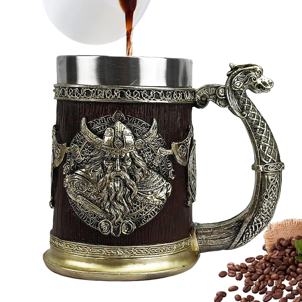 Vintage Viking Beer Cup Large Capacity Resin Beer Mug For Beer Coffee FER Bullet Points: Sturdy Construction: Sip your ale like a true Viking with our beer mug, built to last with a sturdy, cold and heat resistant 304 stainless steel lining and a tough quality resin exterior that is safe and harmless. Enjoy a quality and lasting drinking experience. Boost Your Gift: Engraved with Viking dragon ships on both sides, this beer mug is ergonomically designed with a dragon handle for a more comfortable hold, and is incredibly durable. Celebrate like a Viking. Hand Painted Bronze: Enjoy your favorite brews in the unique Viking beer mug. Hand-painted with bronze finish, no two are the same, and the color may vary slightly from the picture, making it a unique addition to your collection. Double-Layer Design: Ensure ideal beverage temperatures with our Viking beer mug's innovative double-layer design. Keep coffee warm in winter and beer cold in summer. or All-Weather Mug: Our Viking beer mug features a double-layer design that provides warm insulation in cold winter months and cool refreshment throughout summer. Ideal Viking Gift Choice: Impress your loved ones with this handmade Viking beer mug, featuring unique details like a horn-shaped handle and intricate engravings. Perfect for Christmas, birthdays, Valentine's Day, Father's Day, or any special occasion. Give Dad a gift fit for a Viking with our durable tankard mug. Engraved with a majestic dragon ship and hand painted in bronze, it keeps drinks warm in winter and cool in summer. Perfect for Father's Day. Specification: Product name: Viking Beer Mug Material: stainless steel + resin Product size: about 9.5x14.9x16.8cm/3.74x5.87x6.61 inches Weight: about 770g Capacity: about 600ml Packing List: 1 x Viking Beer Mug Note: Due to different lighting and screen settings, the item color may be slightly different from the picture. Due to different manual measurements, please allow a 1-2cm difference in size. 1.You can make a Credit payment via Paypal.Paypal will let you use MasterCard,Visa to pay. 2.Payment should be completed within 5 days after auction closed, or unpaid dispute will be filed for an closing auction.An unpaid case will be filled after 4 days. ● We strive for 100% customer satisfaction ! ● Positive Feedback is very important to us. ● We hope that you contact us immediately BEFORE you give us neutral or negative feedback, so that we can satisfactorily address your concerns. ● We promise to offer the lowest price and high quality produce. Dear buyers : ● Welcome to my store ! ● Your satisfaction is our top goal,we appreciate your patronizing. ● If you have any questions, please contact us before leave negative or neutral feedback, we will try our best to solve the issue to your satisfaction, thanks ! ● If you are satisfied with our service, please rate the details of the transaction (Detailed Seller Ratings) on eBay. ● Please always talk to us via ebay Message. ● We appreciate your business and look forward to growing our e-Bay sales with satisfied customers.