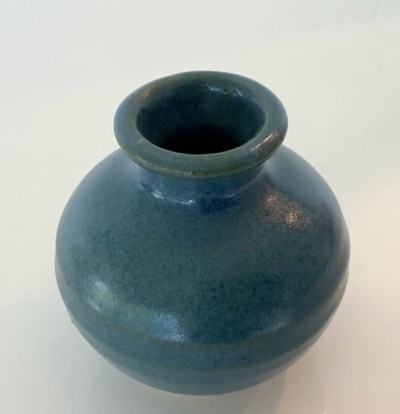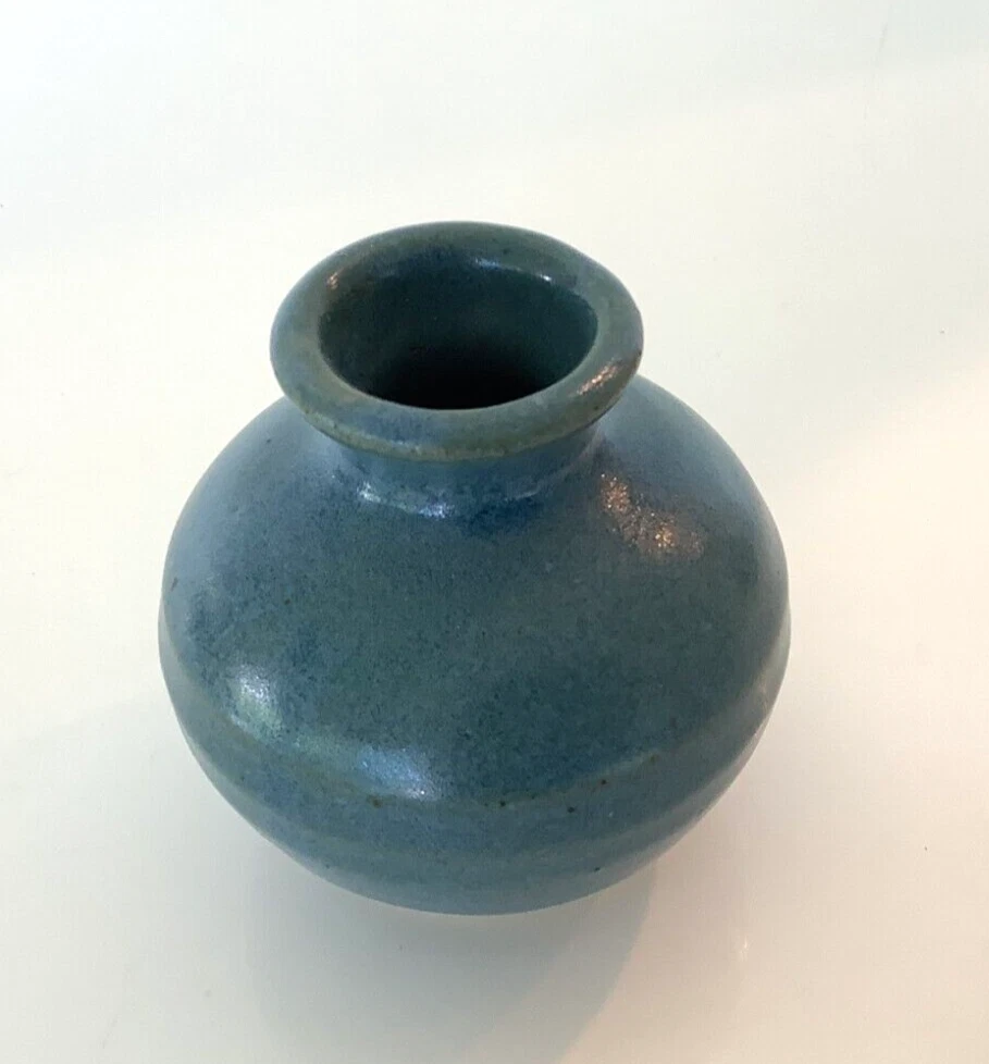 Vintage WHYNOT North Carolina Small Ceramic Vase Weed Pot Aegean Blue 1989