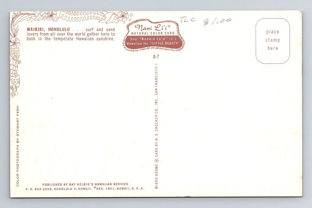 Region: Hawaii Country: USA Theme: Cities & Towns Era: Chrome Unit of Sale: Single Unit Subject: Cities & Towns Original/Licensed Reprint: Original City: Honolulu Country/Region of Manufacture: Unknown Postage Condition: See Image Type: Printed (Lithograph)