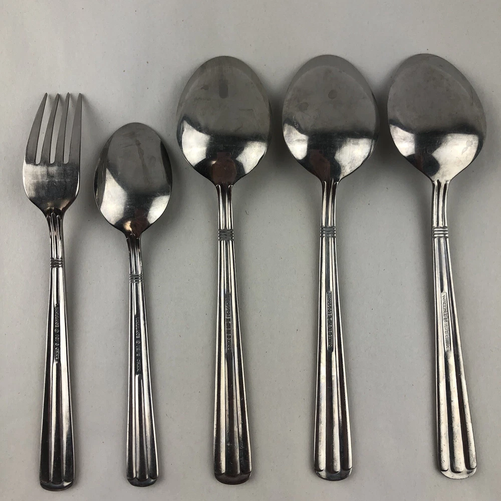 Vintage Wallace Centennial Stainless Flatware 5 Piece Lot Includes: 1 Salad Fork ~ 7 1/8" 3 Oval Place Spoons ~ 7 7/8" 1 Teaspoon ~ 6 1/2" Shows signs of light use and may need additional cleaning. Little spotting in places.** Damage on edge of head on teaspoon.**** Overall very nice condition. Please see pictures for details as this is part of my description.