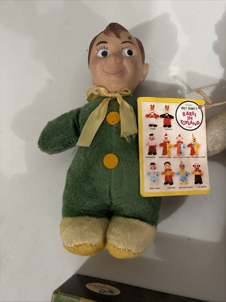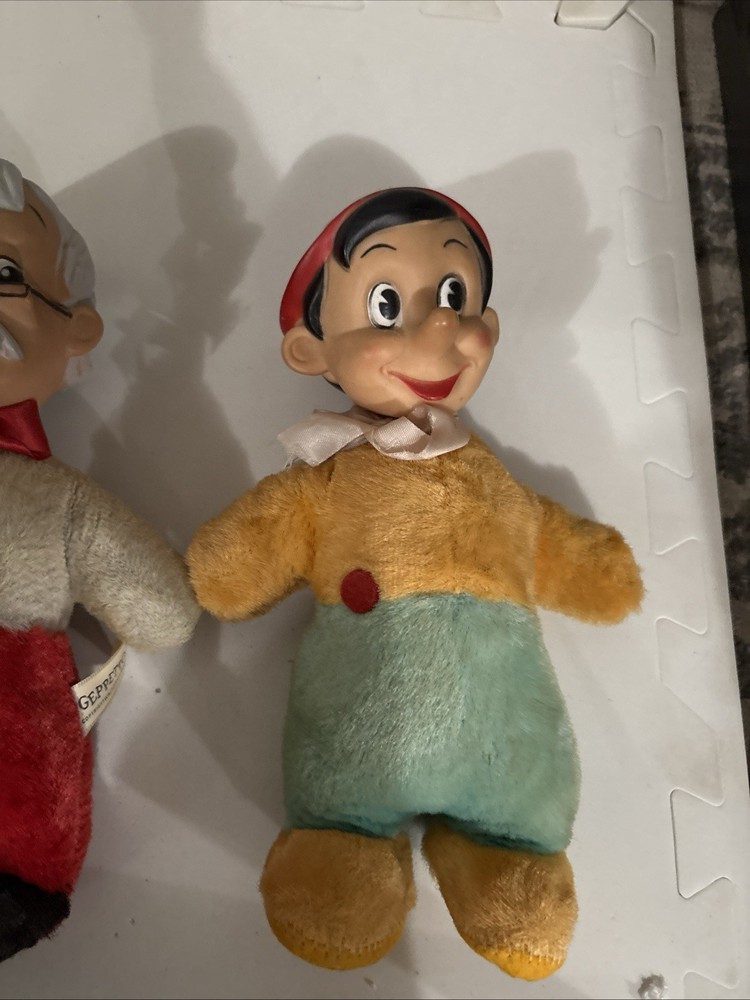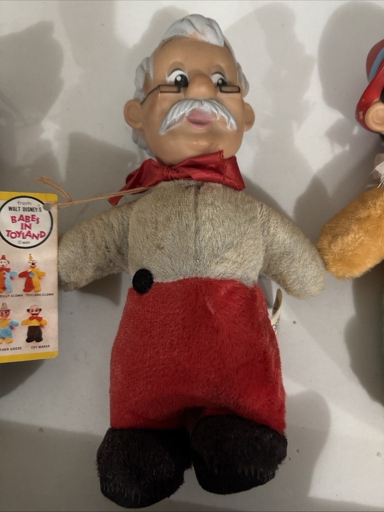 Vintage Walt Disneys Babes In Toyland Plush Toys By Gundikans MFG. Dumbo, Pinocchio, Peter Pan, Geppetto 1960s