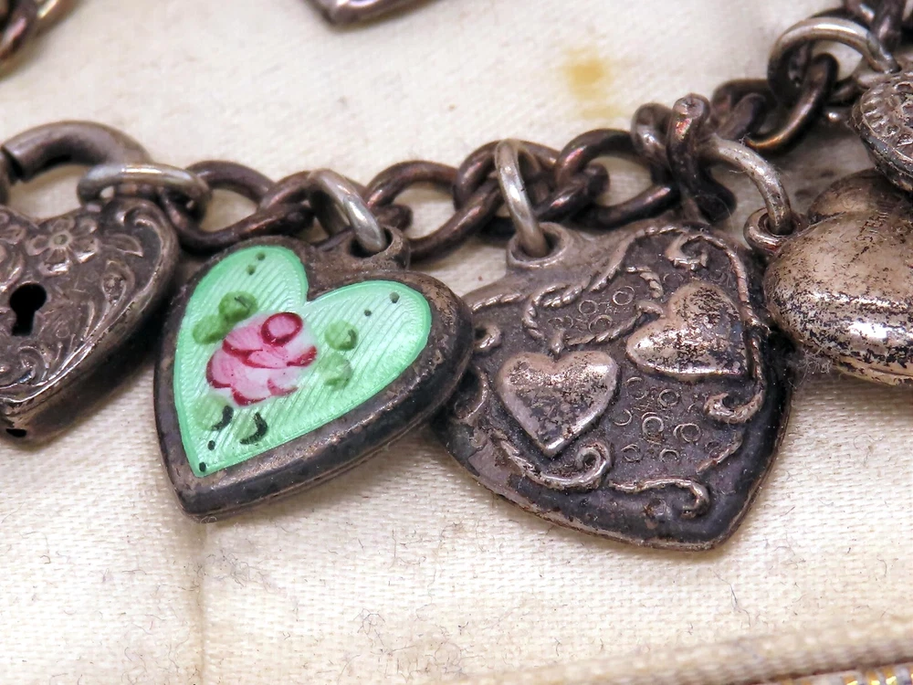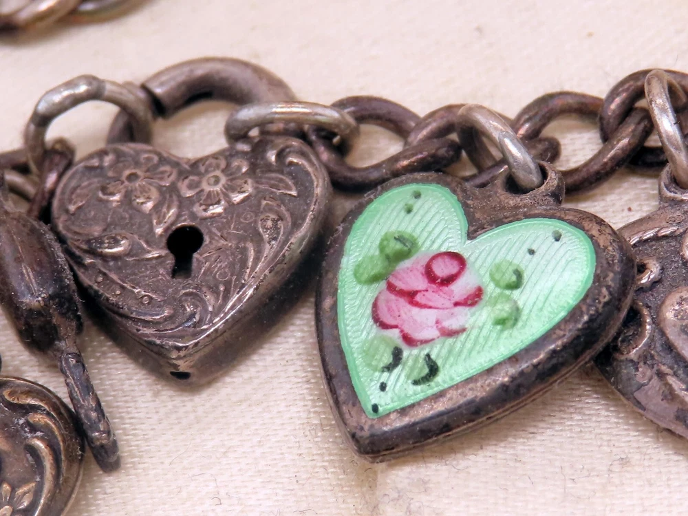 Vintage Taxco Mexico Sterling Silver Shadow Box Charm Bracelet