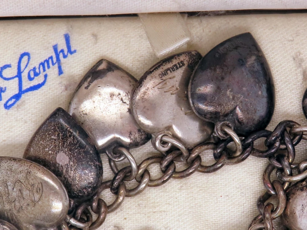 dimensions: metal: stamped sterling silver WL ( Walter Lampl ) description: box not included! 7" length hallmark: sterling condition: pre-owned In the early 1980's, a large charm manufacturer called Aetna Creations Inc., went out of business leaving behind a stock of thousands of different moveable charms. We recently purchased the remains of this treasure trove and we're offering them on ebay weekly. We recommend you bid on the charms of your choice as they are offered on a "first come first serve" basis. We can not guarantee that they will be offered again. Some of these items become very rare and are limited in supply. Some of the charms found were by the Wells and Top Hat charm companies. Most of their charms were produced from 1957-1964. Although these charms are in like-new condition they are in fact 38-45 years old ( a.k.a. new old stock ). These charms possess excellent quality not found in most charms produced today. These charms are guaranteed to be old unless otherwise noted. Feel free to check our feedback for references. Multiple purchases receive a discount on the shipping. All questions must include the item # in emails for reference. Feel free to email us if there are any questions. Please check our feedback for references. Multiple purchases receive a discount on the shipping.