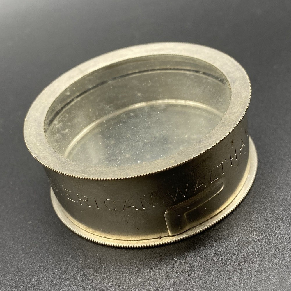 Vintage American Waltham Watch Co Pocket Watch Movement Visible Display Case. It has some wears. One side of glass has a small chip. See close the pictures. Let me know if you have any questions.
