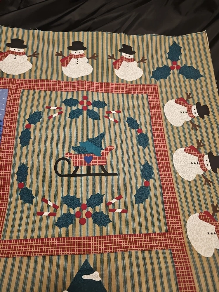 Smoke free home, thanks for looking! Add a vintage touch to your holiday decor with this Wamsutta OTC cotton fabric panel. Featuring a festive pattern of snowmen, gingerbread, and a sleigh, this light fabric is perfect for quilting and crafting. Measuring 36"x34", it is suitable for any quilting project. The fabric is made of high-quality cotton and is quilted for added texture and durability. The multicolor panel is perfect for any holiday-themed project and is sure to add a touch of whimsy to your creations. Whether you are a seasoned quilter or just starting out, this Wamsutta fabric is perfect for all your crafting needs.