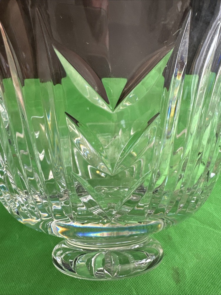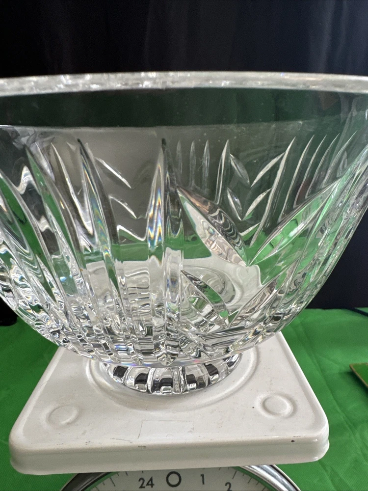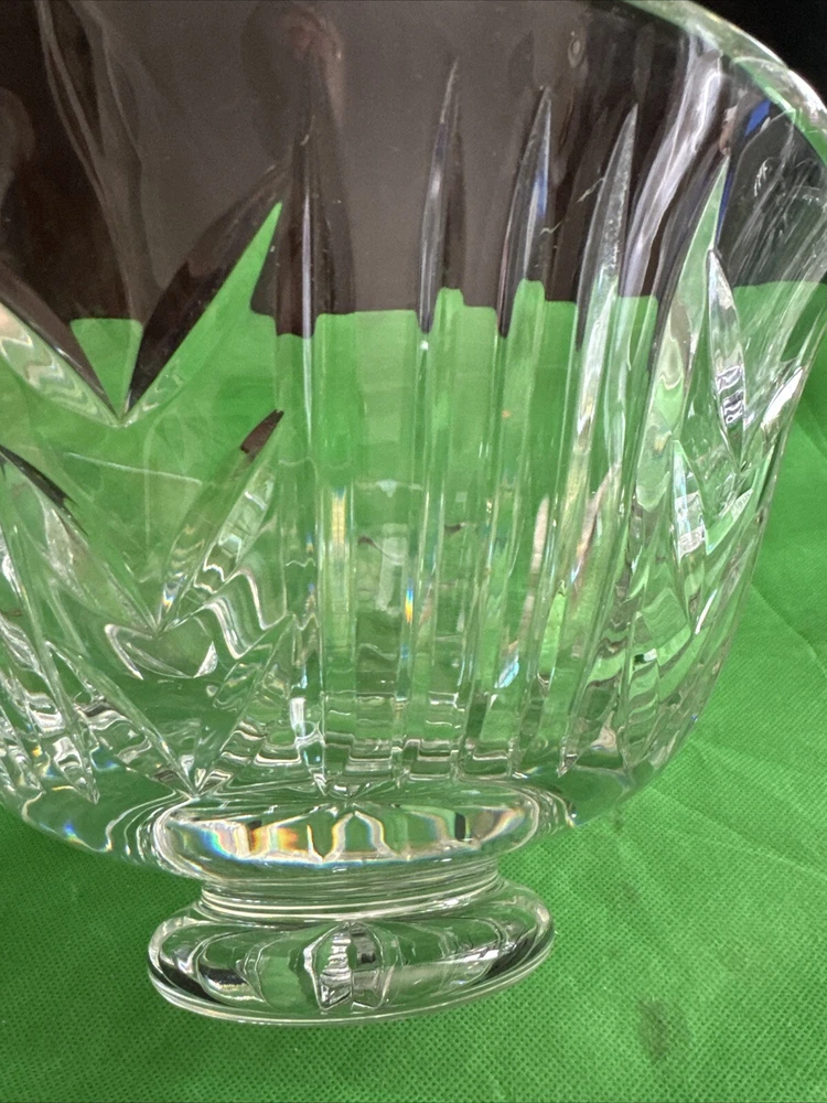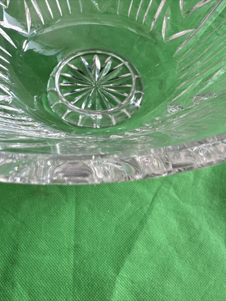 This is a vintage Waterford Crystal footed candy dish, measuring 10 inches in size. It is made of clear crystal and features an elegant design. Perfect for displaying and serving candies or other small treats, this piece would make a beautiful addition to any home decor.