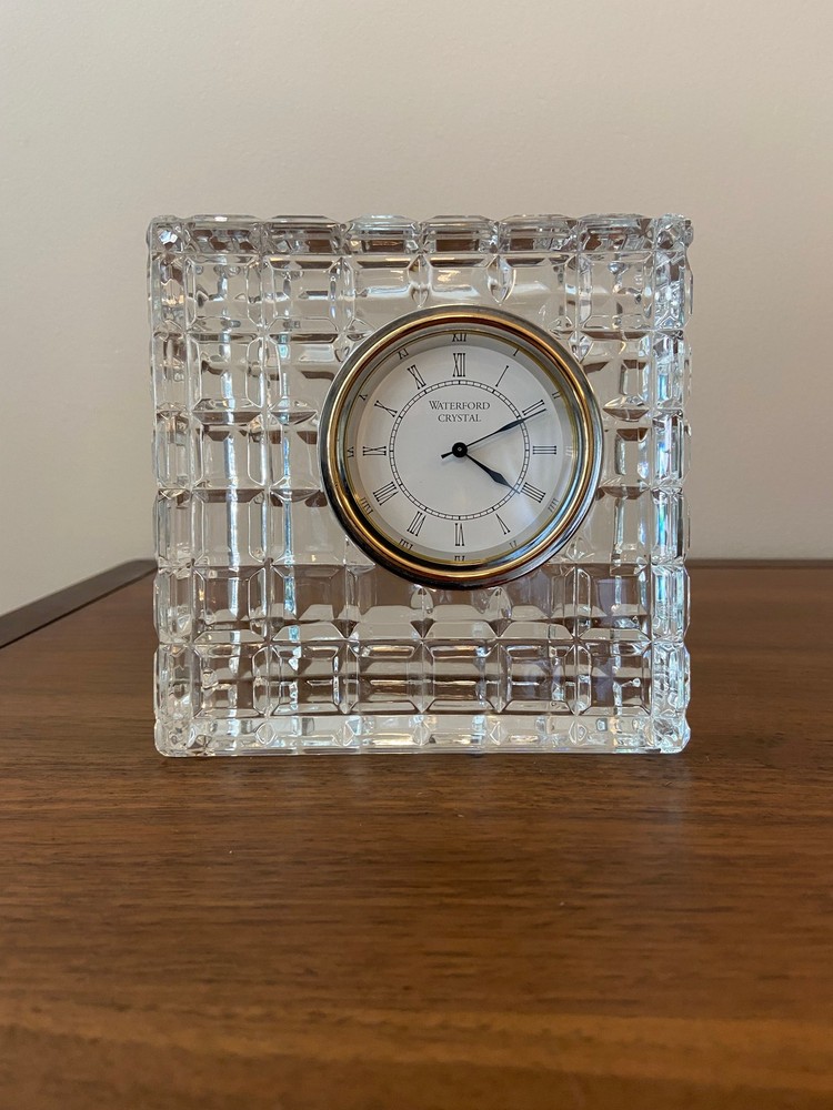 Timeless Vintage Waterford Crystal Clock. CONDITION: It is pre-owned but in good condition: no chips or cracks. See the attached photos. Color: multicolor Style: Vintage Materials: Resin Measurements: 5.5 in H x 5.5 in W x 2 in D, approximately "All our items are sold as is." We are committed to providing you with the best customer experience and affordable prices. Thank you for supporting our small business and contributing to a better and cleaner world.