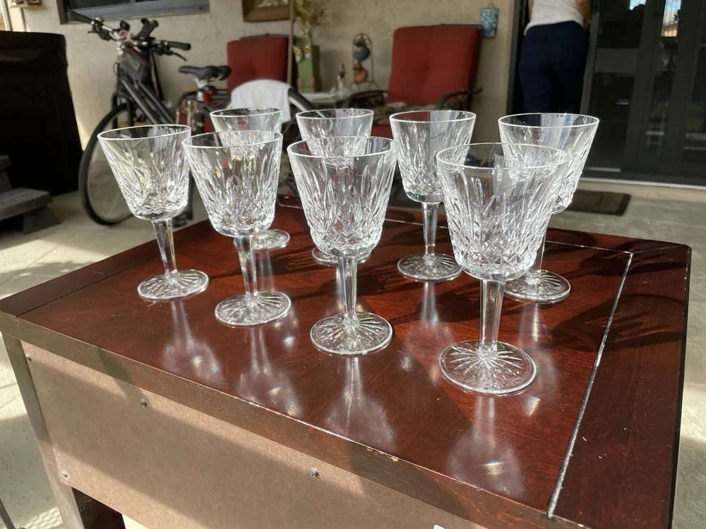 This are all in excellent condition. Please see the many photos I put to show that. All glasses are signed with the Waterford mark and sticker on it. No box. Shipping via USPS ground advantage. Shipping cost includes shipping handling and materials. Ships in the U.S.A. only. Happy to send more photos if needed. Please be attentive to the photos for any information on the condition of the items. The items are sold as is.