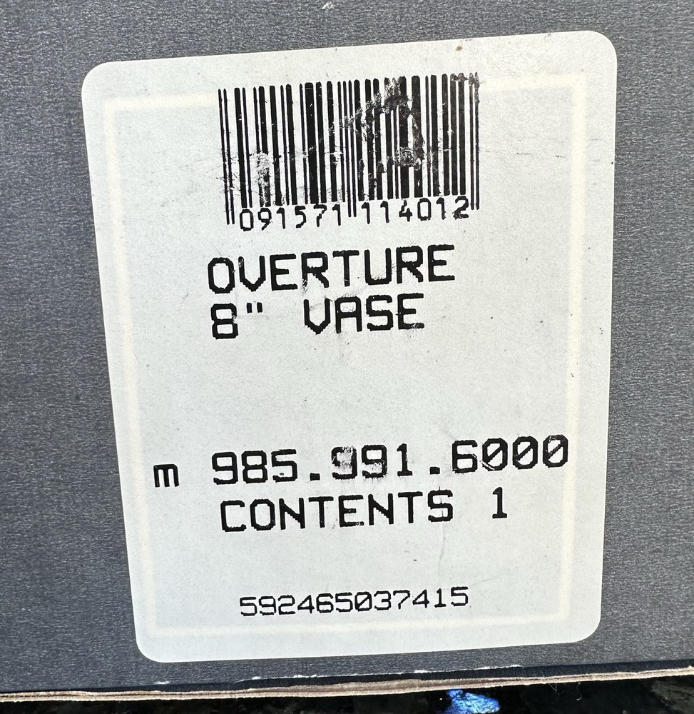 Pattern: Overture Shape: Oval Features: Crystals Antique: No Type: Vase Occasion: All Occasions Material: Crystal Size: Medium Item Width: 10 in Department: Adults Original/Reproduction: Original Brand: Waterford Handmade: Yes Color: Clear Era: Late 20th Century (1970-1999) Number in Pack: 1 Production Technique: Hand Blown Glass Item Height: 8 in