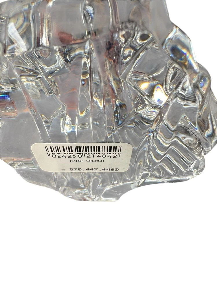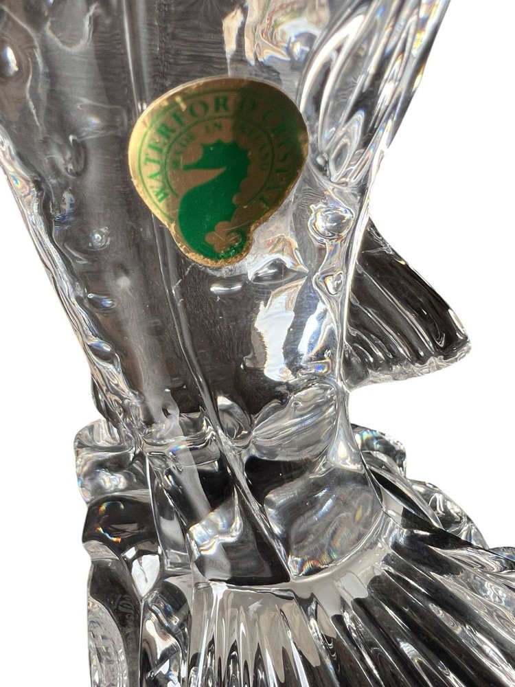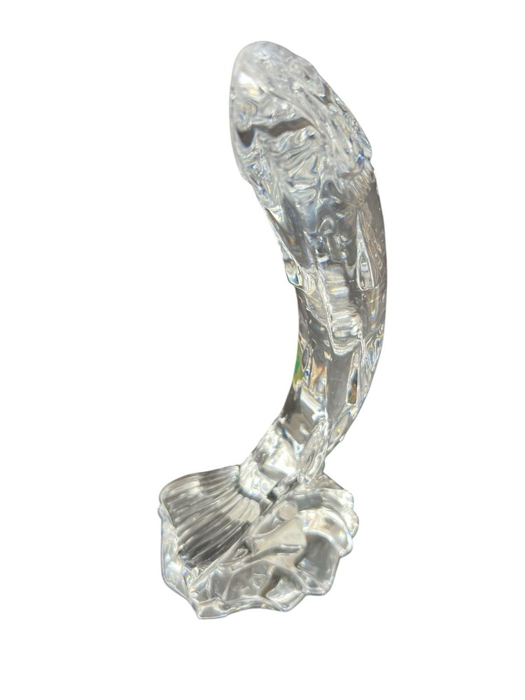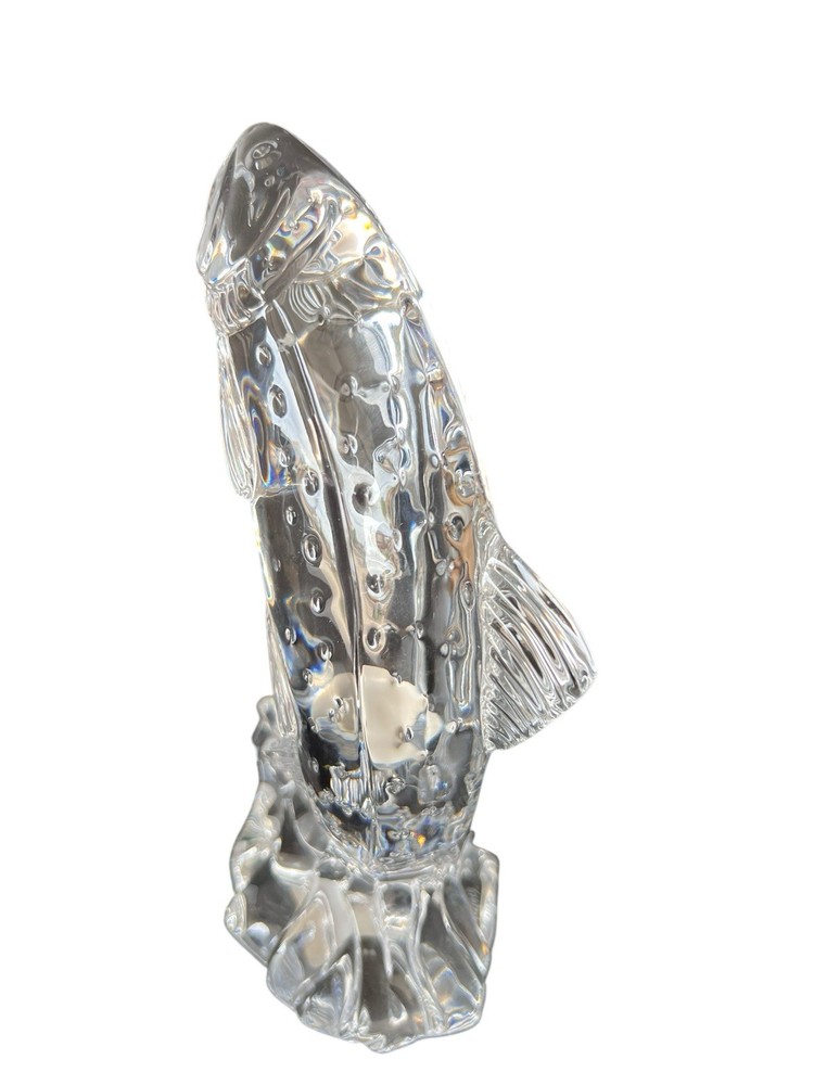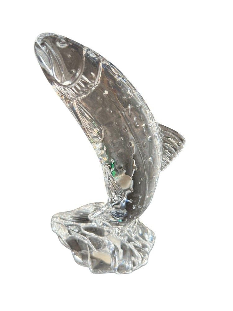 This vintage Waterford crystal paperweight figurine is a must-have for any collector. The intricate design and craftsmanship are evident in the clear crystal material, which makes it a beautiful addition to any decorative collection. Measuring at 8.5 inches, it is the perfect size for display on any desk or bookshelf. The salmon figurine is in excellent condition, ready to be a cherished addition to your collection.