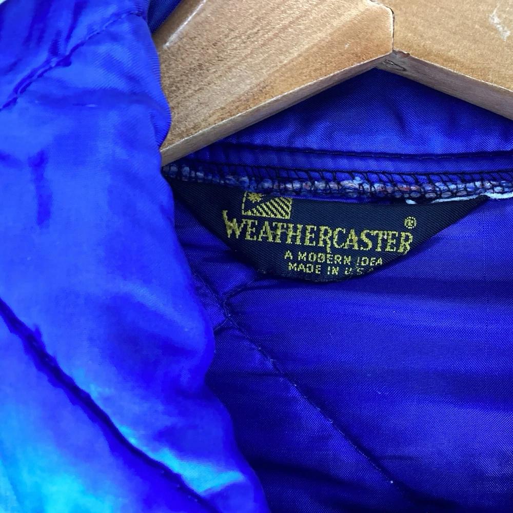 Vintage Weathercaster Puffer Jacket Mens Large Blue Full Zip 70s 80s Brand: Weathercaster Size: Mens Large (Chest "23.5 / Length "25.5) Condition: Pre-Owned / Good Used condition with minor signs of ware, please see photos for any specific defects or details worth noting. If item is used the item will be washed and inspected before listed. Items are stored in a smoke and pet free environment. We offer combined shipping discounts on multiple item orders. Any questions feel free to DM me thanks!!!