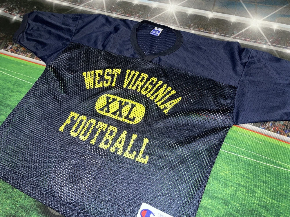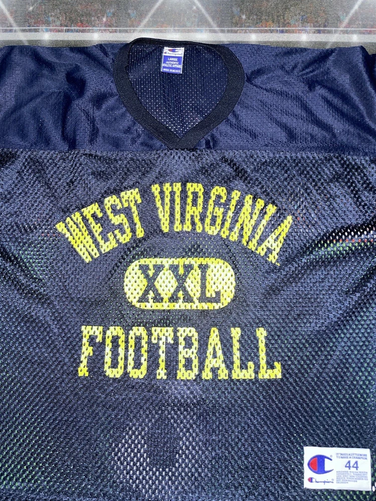 Show off your love for the West Virginia Mountaineers with this vintage football jersey from Champion. The blue unisex adult jersey is perfect for any fan of the team looking to support them during the pre-season. With a size of 44, this jersey is a great fit for anyone who wants to represent their favorite college team in style. The jersey features the team's name and logo, making it a great addition to any fan's collection. Whether you're heading to a game or just want to show off your team spirit, this vintage West Virginia Mountaineers jersey is the perfect choice.