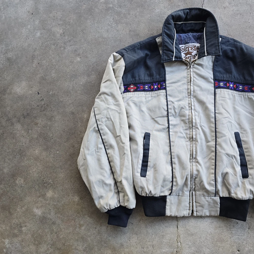 Vintage Western Frontier Aztec Jacket Carhartt Style Southwestern Medium In good vintage condition Blanket lined Chest: 22 Length: 24.5 Light spot in rear