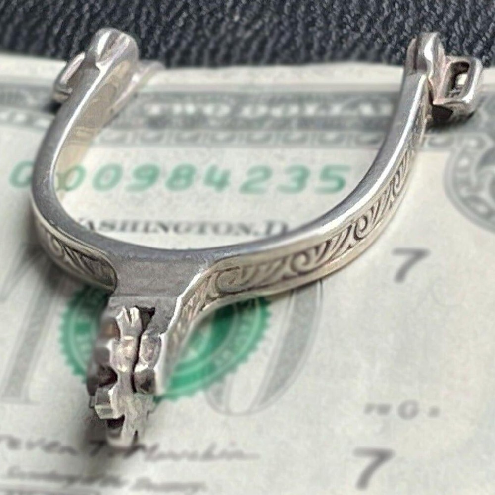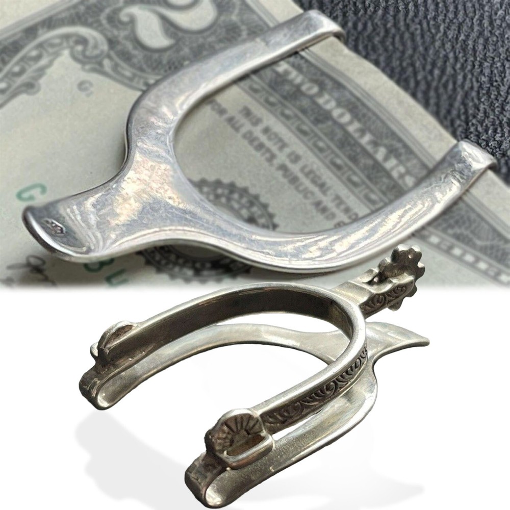 Features 1. Classic and minimalist: Our rare retro Western Spurs sterling alloy wallet is made of genuine sterling alloy. This wallet features a rare retro Western Spurs design and is a luxurious accessory for fashionable men. 2. Secure firmly: Each wallet has a secure and reliable grip, which can firmly hold your banknotes and credit cards in place, making them orderly, easy to access, and preventing accidental slipping. 3. This smooth wallet is of moderate size and suitable for placing in any pocket, securely holding cash, credit cards, and paper currency, making it a modern alternative to bulky wallets. 4. Convenient wallet: This alloy wallet can be used for almost any occasion. Whether you bring it to the office or a nightclub, it can keep your cash and cards organized. 5. The best gift for men: This alloy personalized carved wallet can be used for gifting or safekeeping. It is an ideal gift for fathers, husbands, brothers, friends, professional colleagues, or groom's officials. The perfect gift for Christmas, Valentine's Day, Father's Day, birthdays, graduation ceremonies, anniversaries, and weddings. Specification Material: Alloy Size: 5*3*1 cm Package Include: 1x Engraved Money Clip