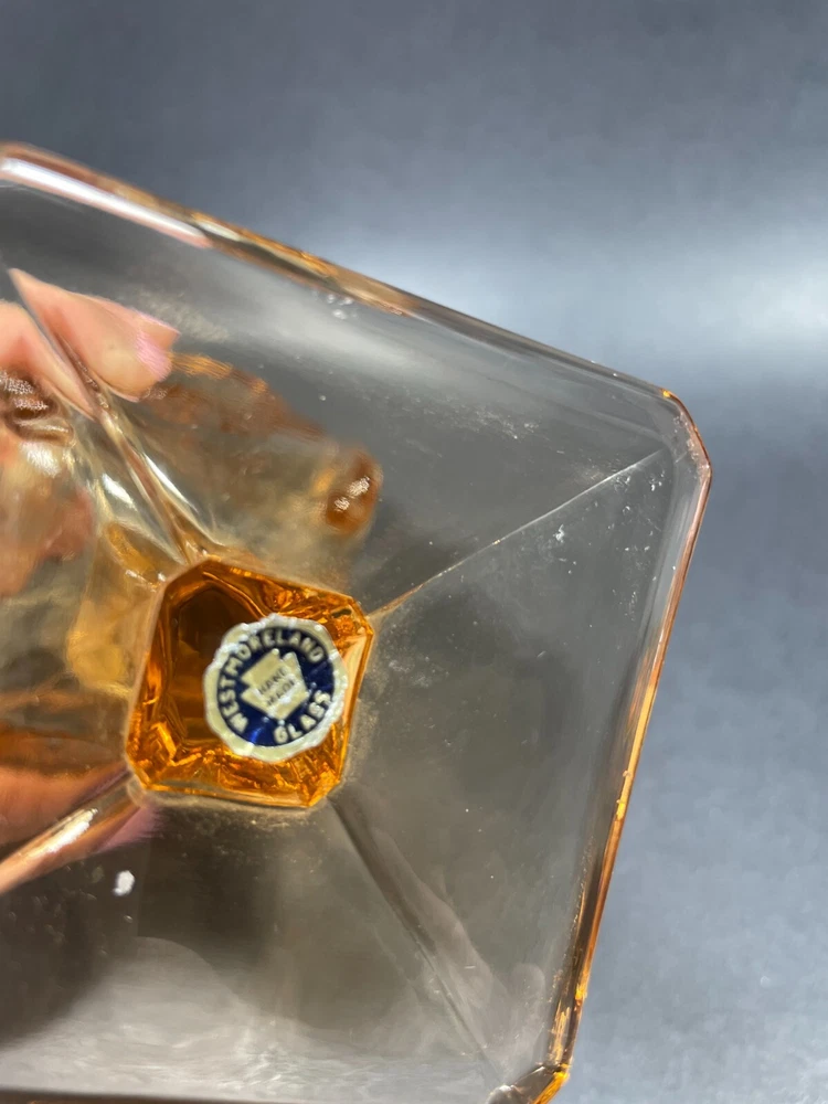 Westmoreland handmade amber peach wine glass/goblet. Rare item. Replacement or addition to an existing set. It is in very good condition, no chips or cracks. It is clean. Measures (approx.): 3.75" DIA rim, 6.25" H. It has the original sticker. Please see photos for more details. Please note that the item is vintage and may show signs of wear. We have done our best to honestly and accurately describe and photograph the item, including possible flaws. What you see are the actual photos of the item being sold. If you have any questions regarding the item, please ask! We DO NOT SELL outside United States. SHIPPING The item will be shipped within three business days after receipt of payment. We ship via USPS to any location within the 48 continental United States, NO INTERNATIONAL SHIPPING. Shipping is calculated by EBAY based on the weight and size of the item plus packaging. We can combine shipping in case you buy multiple items that can be safely shipped together. Thanks for looking!