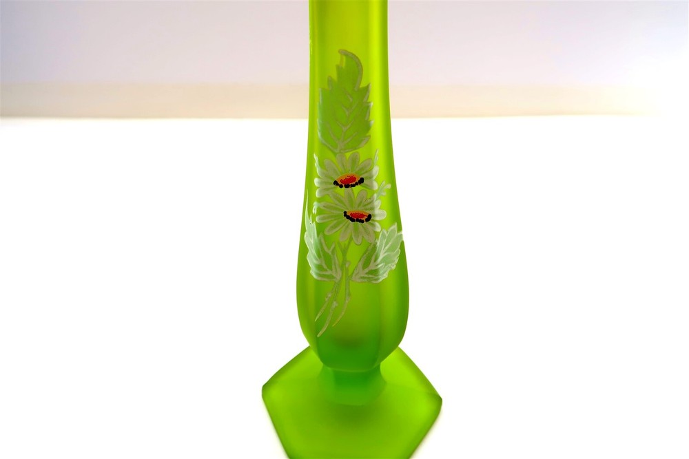 Vintage Westmoreland Daisy Green Satin Glass VASE 9.75" Tall Hand Painted This eBay listing is for a vintage 1970's era Westmoreland Satin Glass vase with hand painted daisy pattern that comes as you see pictured in the listing and noted above. This piece is in excellent condition with no damage or chips found. The painted vase measures a total of 9.75" tall. I just picked up a small 25 piece collection of this Westmoreland satin glass and will have the other pieces listed in my ebay store at this time as well. Seller Location Reference - China Rows BID IN CONFIDENCE – CHECK MY FEEDBACK! My goal is your satisfaction. I leave positive feedback right after the payment is received for all orders!! If you plan to leave anything less than positive feedback and 5 stars - please let me know so that I can work out any problems that you may have. I aim to please!! SHIPPING & HANDLING FOR US BIDDERS We ship ASAP upon payment as noted above within 1 business day 99% of the time!! We normally pack up your new treasures 2 - 3 times a day and ship using USPS and Fedex Ground so that you get your items in a timely fashion. As always - there is no charge for local pickup on any of my items!! SHIPPING AND HANDLING FOR INTERNATIONAL BIDDERS Import duties, taxes and charges are not included in the item price or shipping charges. These charges are the buyer’s responsibility. Please check with your country’s customs office to determine what these additional costs will be prior to bidding/buying.” THANK YOU AND HAVE A WONDERFUL DAY!! Powered by SixBit's eCommerce Solution