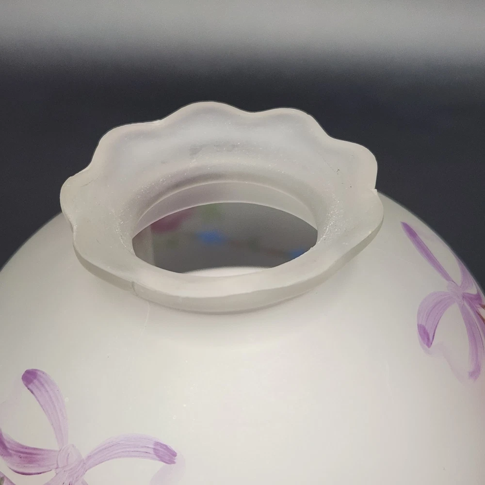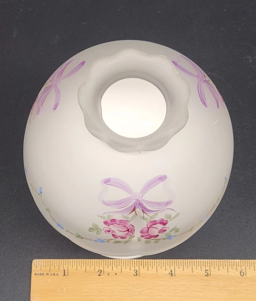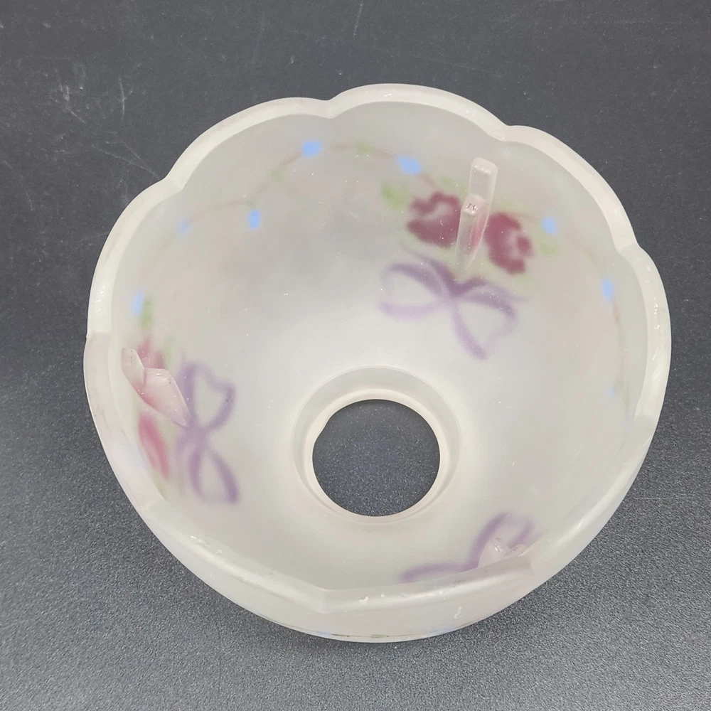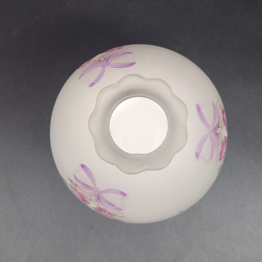 A vintage Westmoreland fairy light featuring hand-painted roses and bows on frosted milk glass. This elegant piece emits a warm, nostalgic glow when a votive or tea light is added. • Hand-painted floral and bow details • Frosted milk glass construction • Measures approximately 7.5 inches tall • Vintage collectible piece Used but in very good condition for its age. A few tiny surface scratches on the frosted glass. See photos for details.