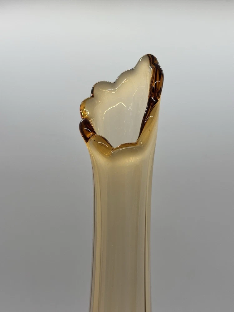 Westmoreland swung vase , paneled with grape leaves and bunches design Not a true amber , a little more to peach color 11.5” h base is 2.5” Perfect condition no glass sickness or chips Experienced packing and fast shipping